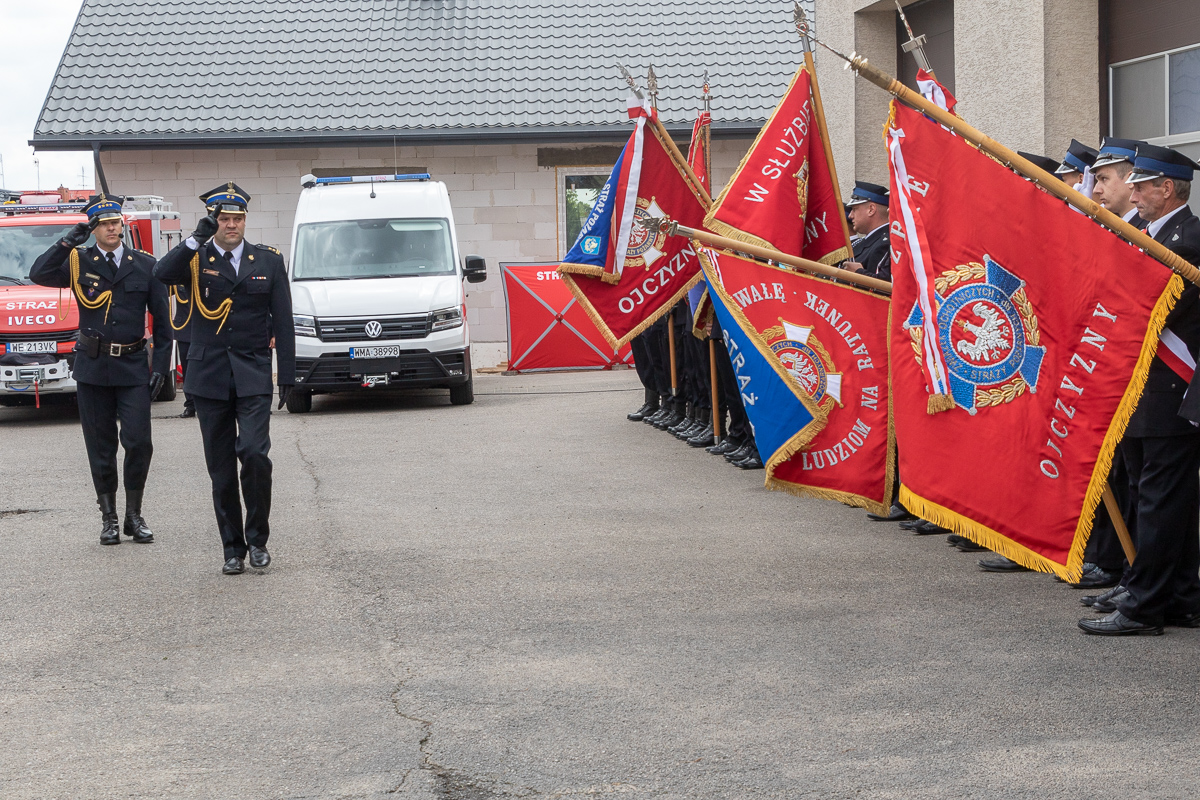 Uroczysty apel rozpoczął się od meldunku. – Panie nadbrygadierze, dowódca uroczystości st. kpt. Michał Kacprzycki melduje pododdziały Państwowej i Ochotniczej Straży Pożarnej do uroczystego apelu z okazji Powiatowego Dnia Strażaka – zameldował dowódca uroczystości. Meldunek przyjął zastępca Mazowieckiego Komendanta Wojewódzkiego PSP- bryg. Artur Gonera. Obydwaj oficerowie oddali honory sztandarowi i przy dźwiękach marsza generalskiego dokonali przeglądu pododdziałów.