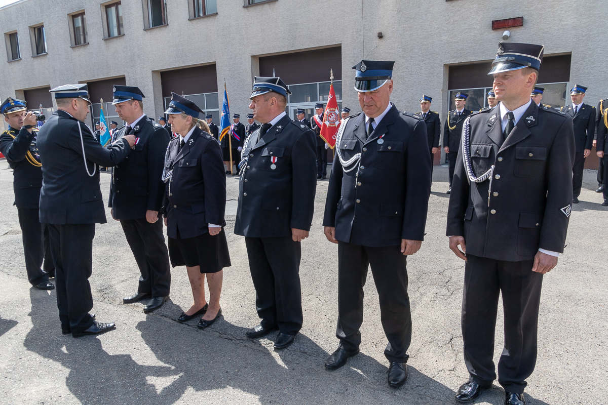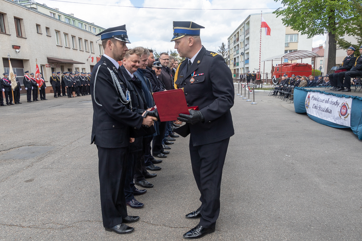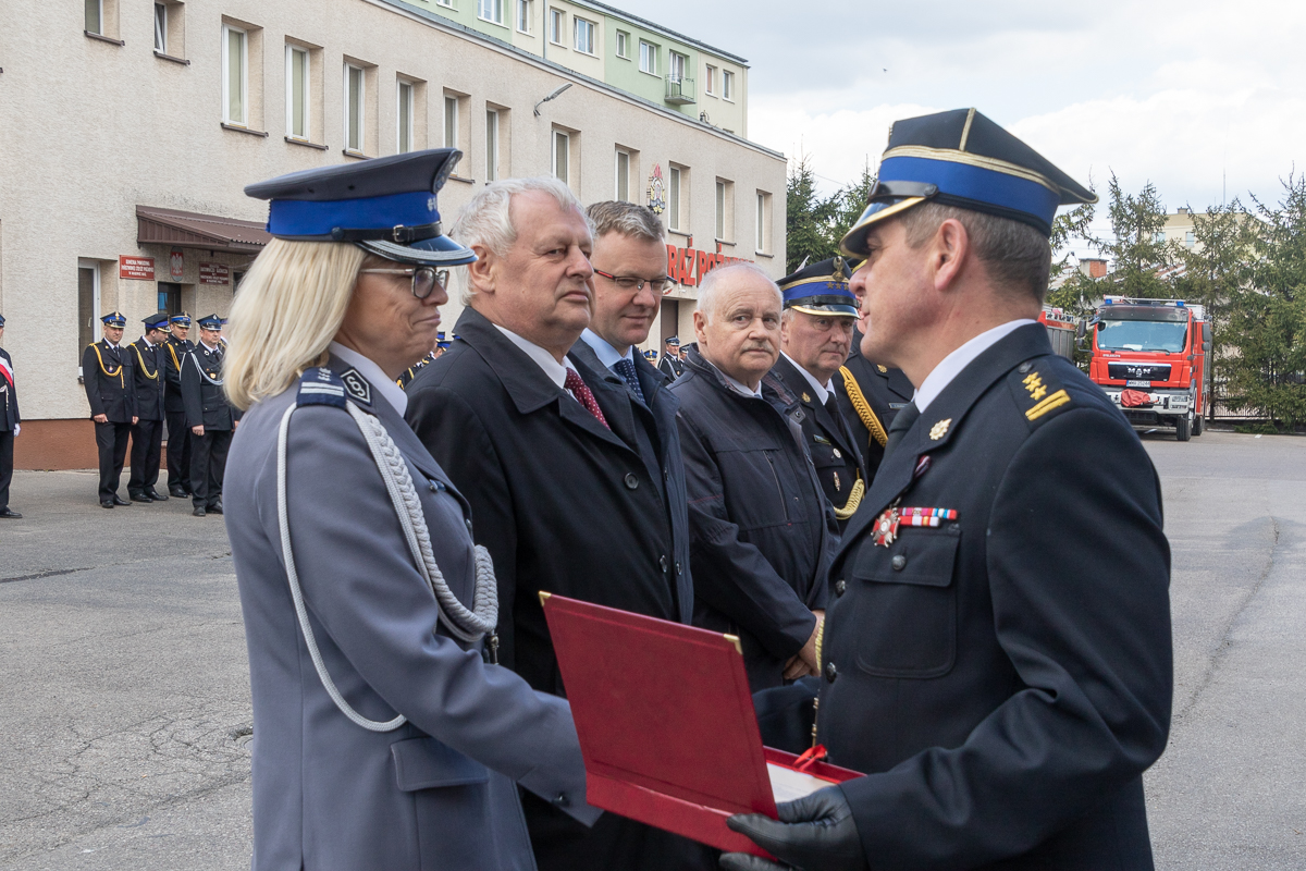W dalszej części uroczystego apelu wręczano pamiątkowe statuetki i odznaczenia. Statuetki otrzymali samorządowcy powiatu makowskiego. Odznaczeniami udekorowani zostali natomiast strażacy i osoby zasłużone dla ochrony przeciwpożarowej. Szczególnie wzruszająca była chwila dekorowania poprzednich komendantów powiatowych PSP w Makowie Maz.