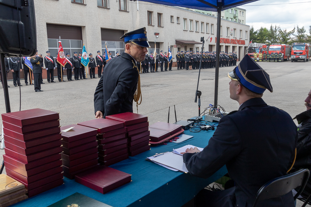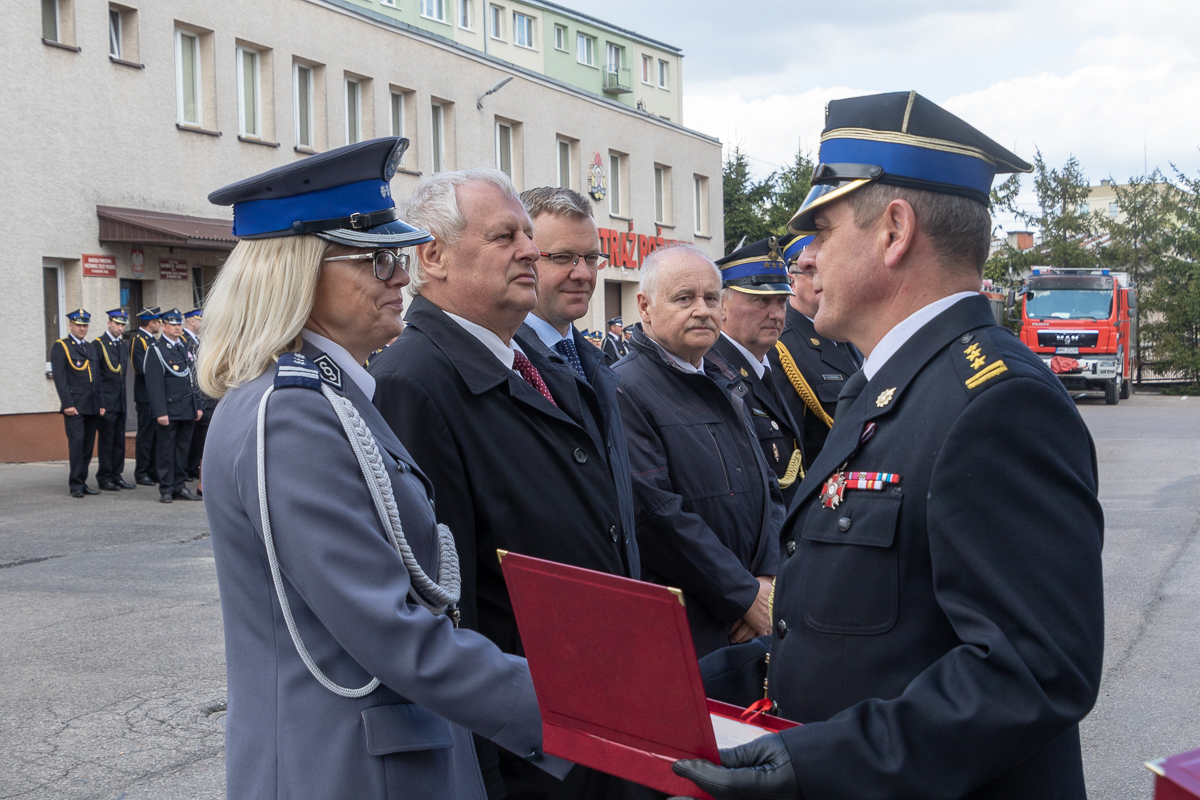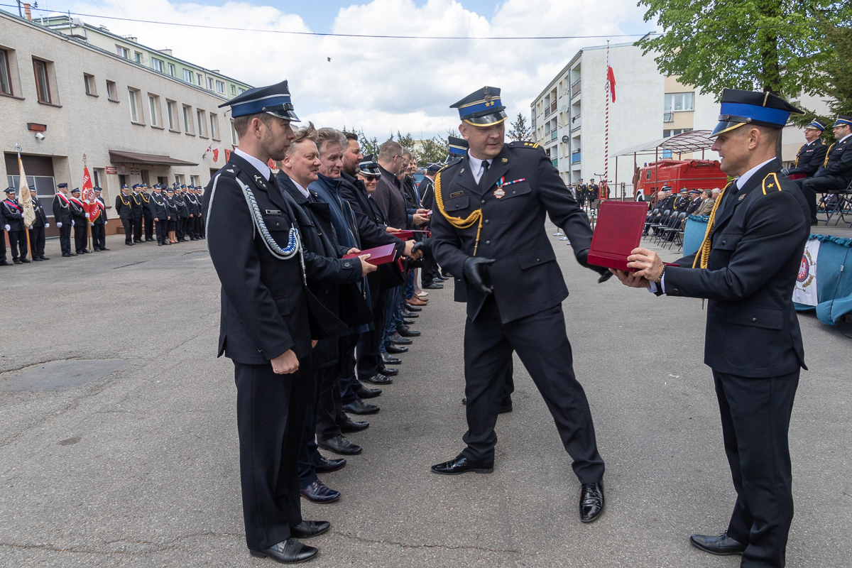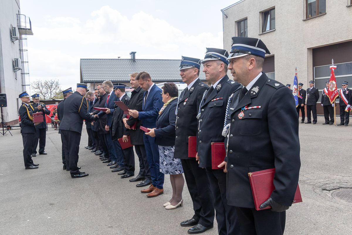 W dalszej części uroczystego apelu wręczano pamiątkowe statuetki i odznaczenia. Statuetki otrzymali samorządowcy powiatu makowskiego. Odznaczeniami udekorowani zostali natomiast strażacy i osoby zasłużone dla ochrony przeciwpożarowej. Szczególnie wzruszająca była chwila dekorowania poprzednich komendantów powiatowych PSP w Makowie Maz.