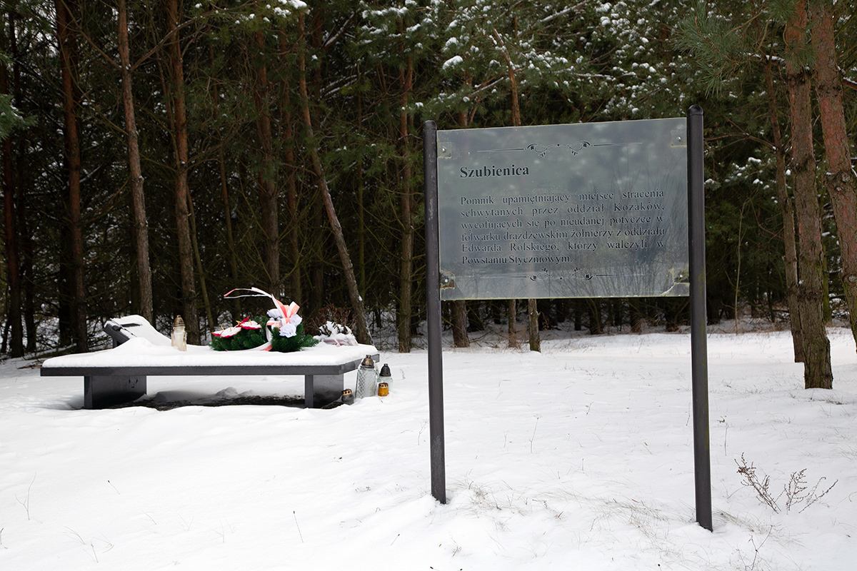 W miejscu powstańczej kaźni gmina ufundowała nowy pomnik. Dzieci chodzą tam zapalać znicze, dbają też o porządek wokół pomnika. Czy wiedzą dlaczego las nazywa się Szubienica?