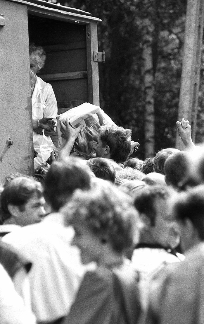 Część handlowa imprezy 31 lat temu była mocno spartańska, tak pod względem oferty, jak i warunków sprzedaży. Sprzedaż chleba i miodu pitnego prowadzona była z samochodów ciężarowych. Miód cieszył się niesłychanym powodzeniem, na co dzień trudno go było kupić w sklepie z alkoholem.