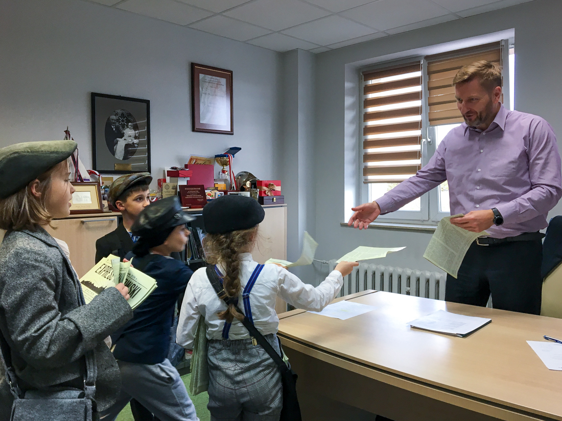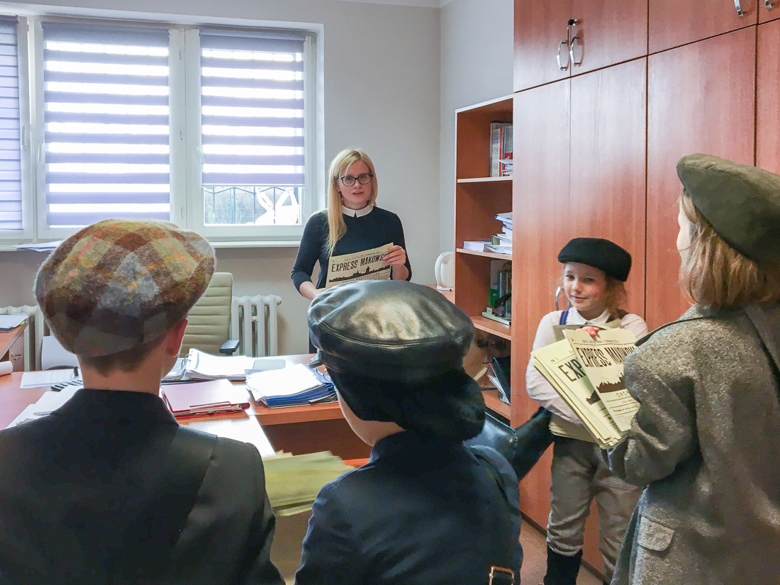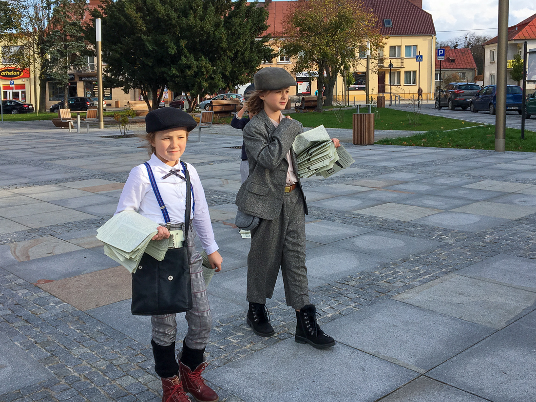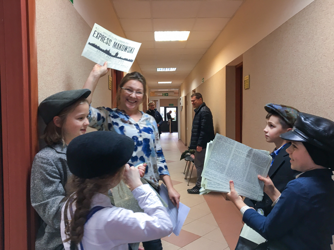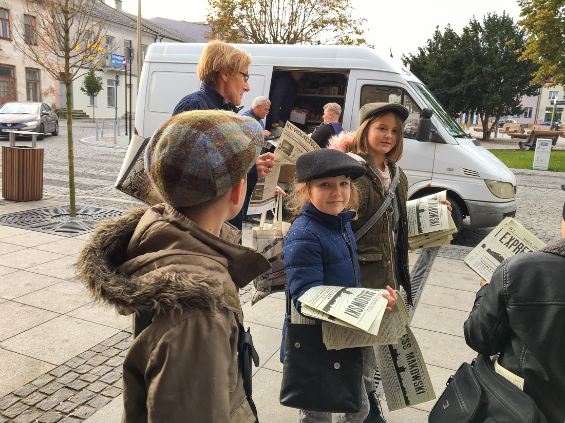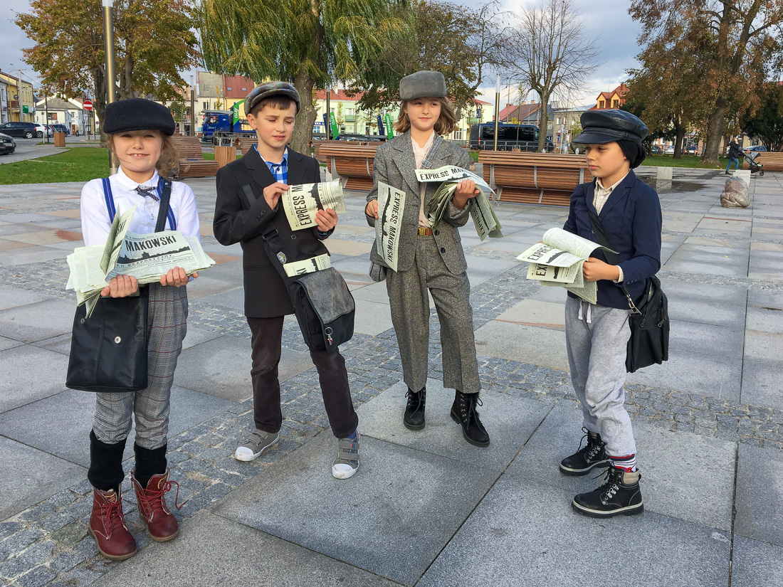 Na rynku w Makowie Mazowieckim pojawili się gazeciarze, którzy rozdawali mieszkańcom miasta ulotkę informacyjną dużego formatu w postaci gazety, nawiązującej graficznie do prasy regionalnej wydawanej w ubiegłym stuleciu. Następnie, przeszli ulicami Miasta, by odwiedzić Urząd Miejski i wręczyć “gazetę” wszystkim pracownikom oraz burmistrzowi Makowa Mazowieckiego – Tadeuszowi Ciakowi.