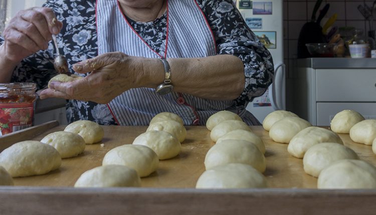 Zawijać jak pierogi, szklanka obrzynać, obsypać mąką i układać na sito w ciepłem miejscu; jak dobrze podrosną, wrzucać na gorący szmalec wyrośniętą stroną, w czasie smażenia wstrząsać rondlem.