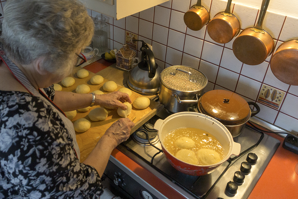 Próbować kawałkiem ciasta czy szmalec gorący, gdyż takowy nigdy się nie zagotuje, choćby się spalił; jeżeli ciasto rzucone rumieni się, to już dobre, jeżeli zaś blade, to jeszcze szmalec nie dość gorący. Po wyjęciu natychmiast cukrem obsypać.