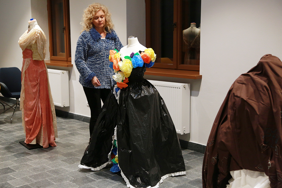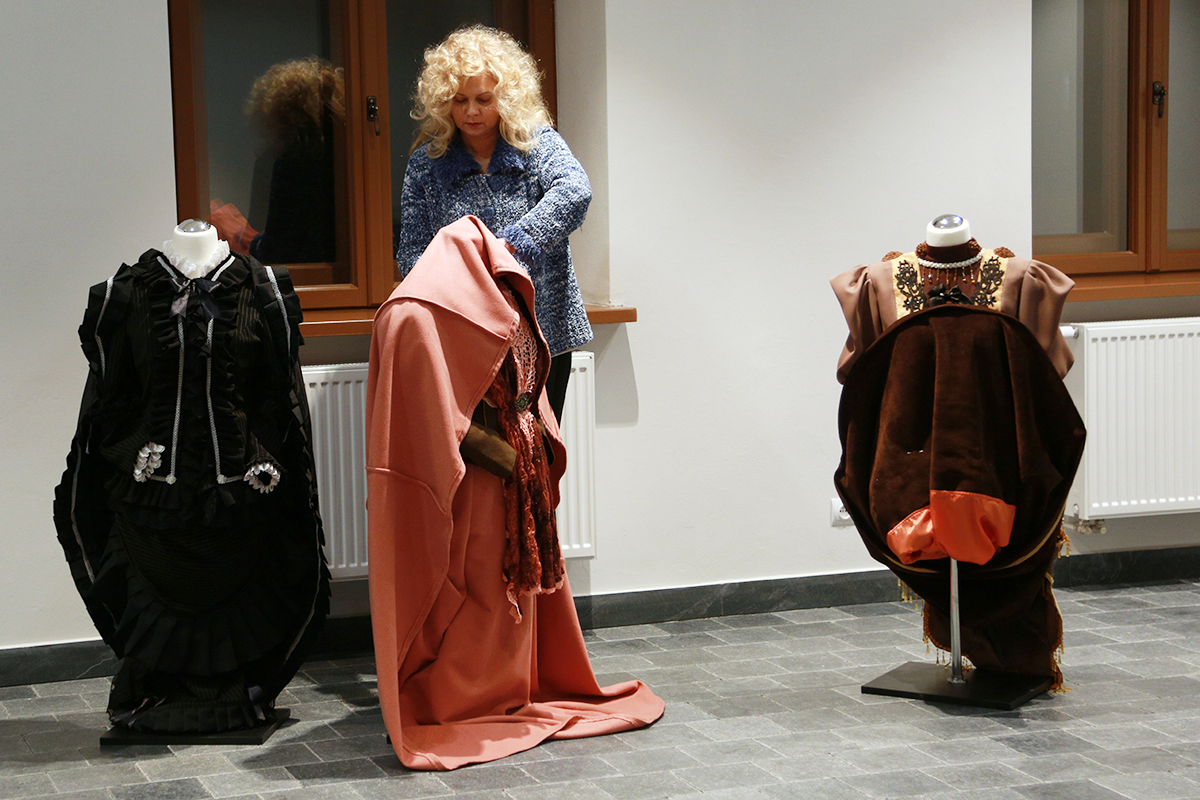 Na zdjęciach: autorka wystawy Małgorzata Retkowska, projektantka, menadżerka kultury i właścicielka Agencji Artystycznej „Retro-Pasje”, która poza projektowaniem strojów zajmuje się także tworzeniem rekwizytów do rekonstrukcji historycznych.