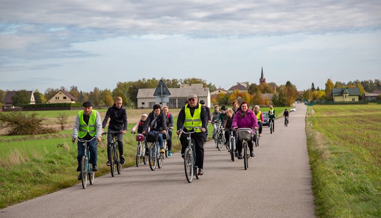 Uczestnicy wyruszyli spod kościoła farnego w Makowie o 9:30 i po godzinie niespiesznego pedałowania zatrzymali na rozległym placu przy plebanii w Czerwonce, gdzie powitał ich ks. proboszcz Jarosław Sokołowski.
