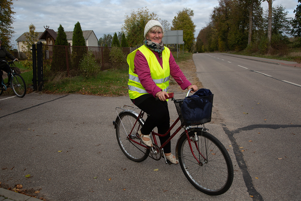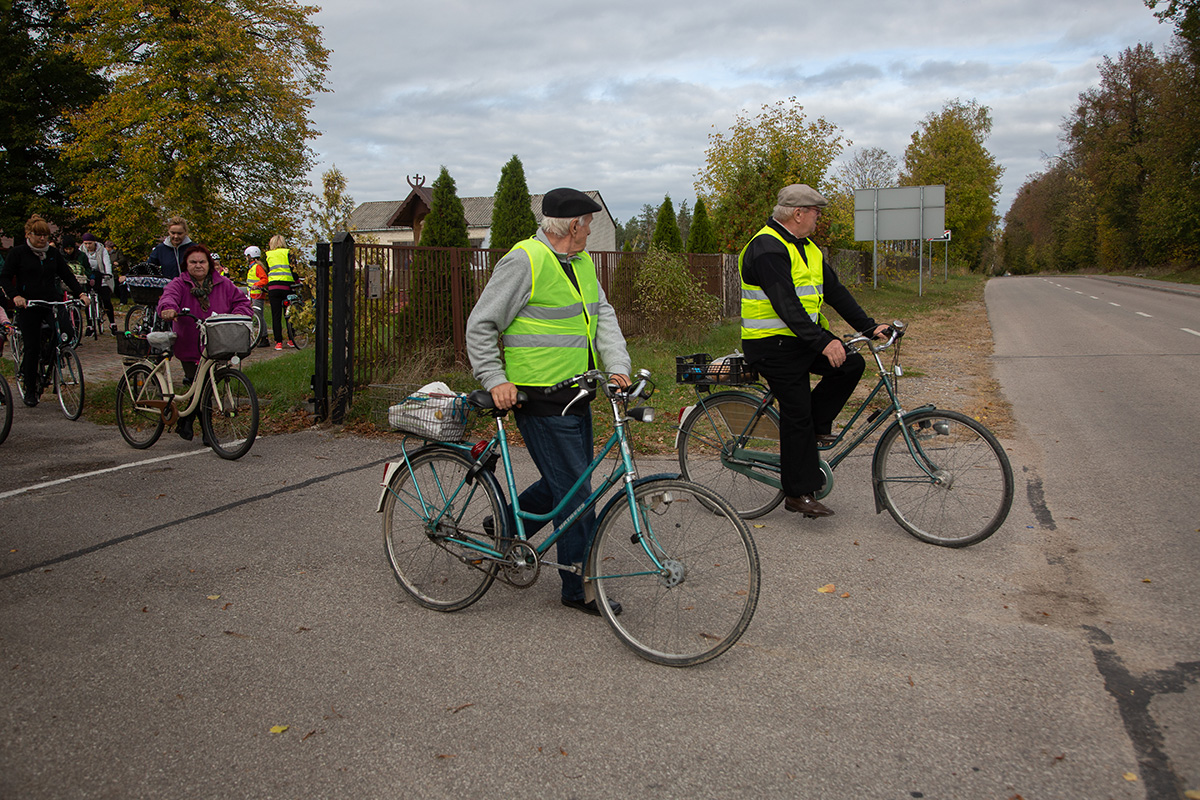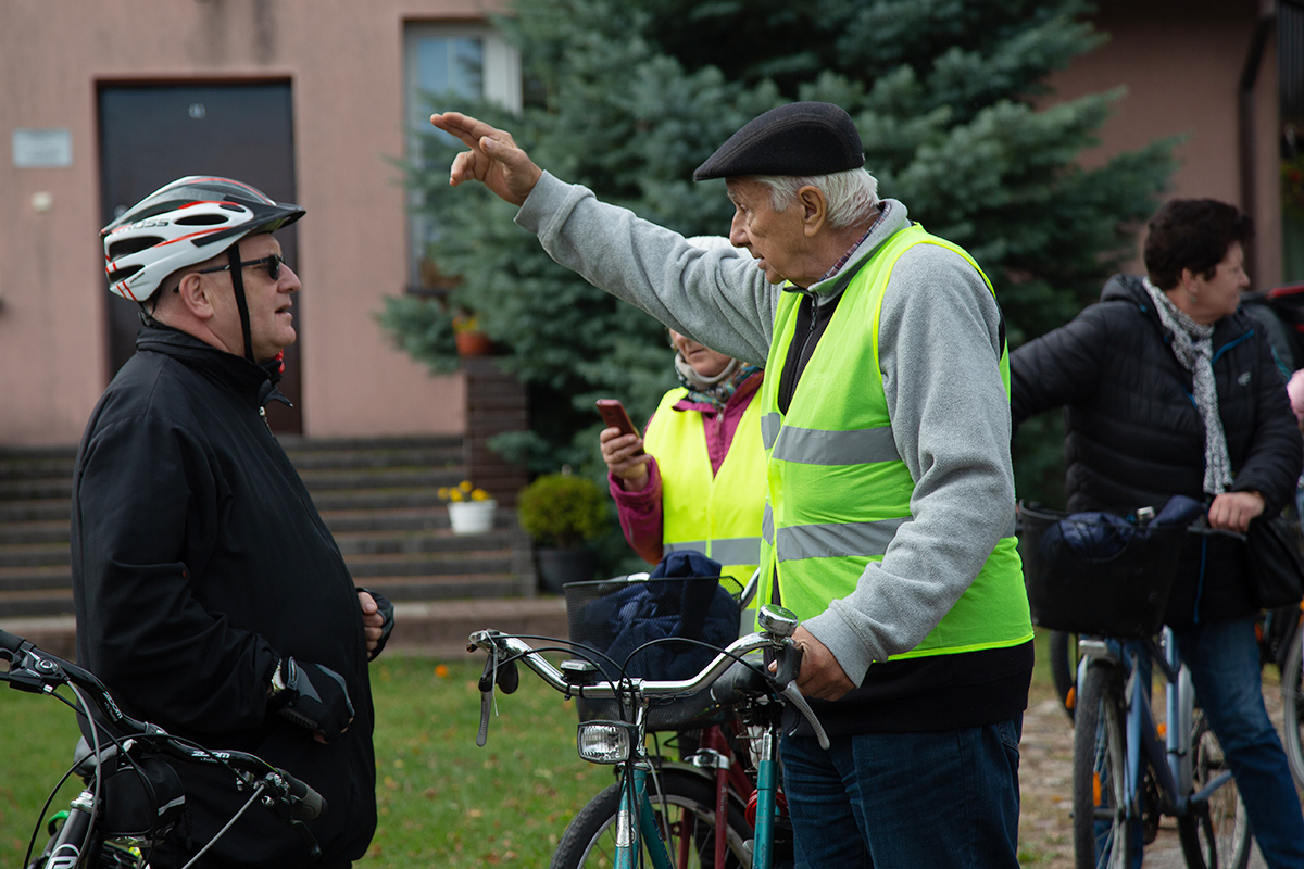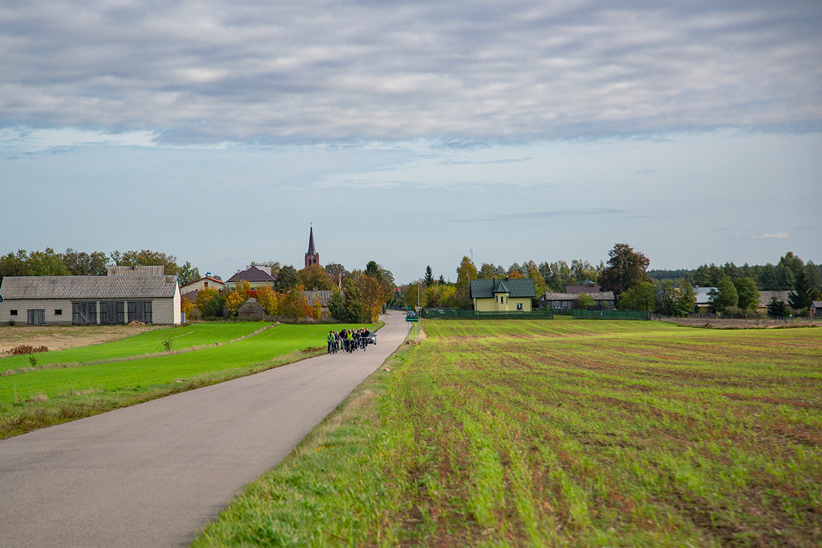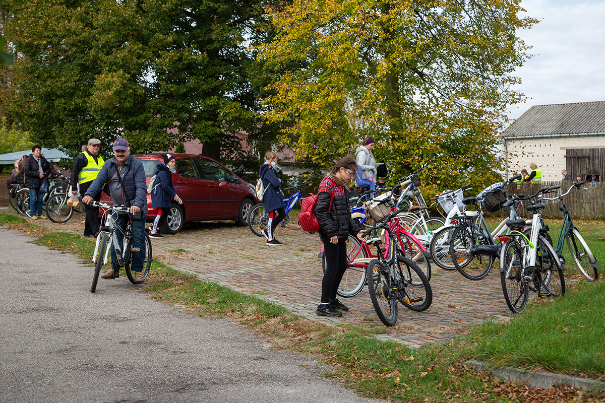 Uczestnicy wyruszyli spod kościoła farnego w Makowie o 9:30 i po godzinie niespiesznego pedałowania zatrzymali na rozległym placu przy plebanii w Czerwonce, gdzie powitał ich ks. proboszcz Jarosław Sokołowski.