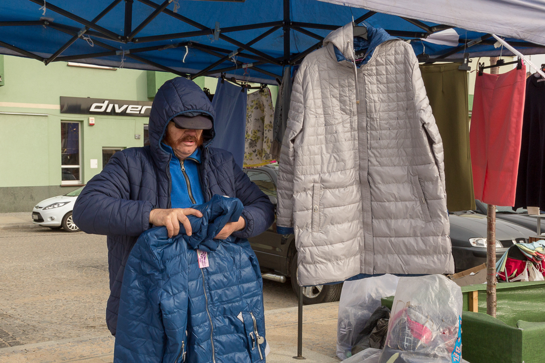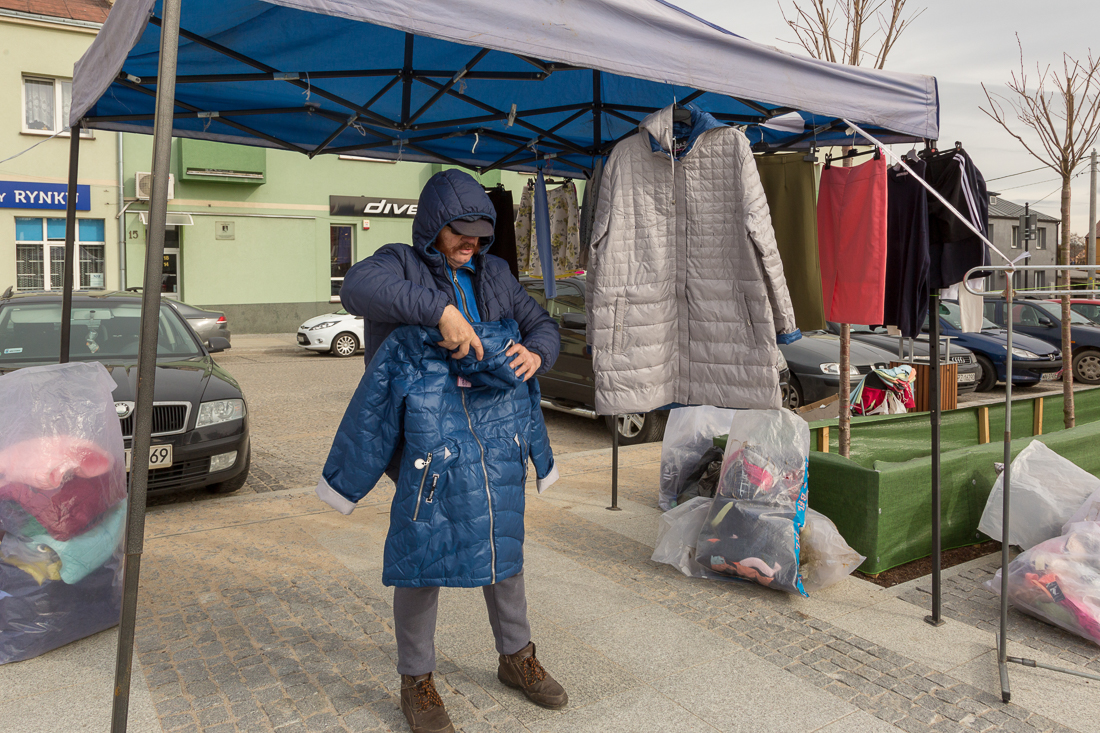 – To jedyne dobre miejsce do nieuciążliwego handlu – mówi z przekonaniem. – Próbowałem na pasażu handlowym, ale tam jest bardzo mało miejsca na stragan. Odzież wymaga miejsca, to nie jajka czy owoce. Raz udało mi się ustawić na pasażu, ale na miejscu byłem o 5 rano, a i tak z trudem się zmieściłem. Na placu targowym też nie jest dobrze, bo tam jest mydło i powidło, wszystko się gubi w tłoku.
