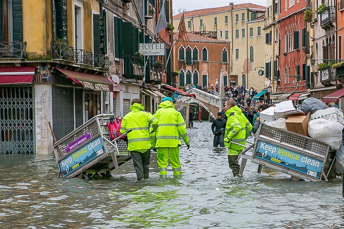 W Wenecji obowiązuje segregacja odpadów. Śmieci od mieszkańców są odbierane codziennie. Opłata za śmieci naliczana jest od osoby i metrów kwadratowych. Pięcioosobowa rodzina zajmująca 100 metrowe mieszkanie płaci za odbiór śmieci około 39 euro miesięcznie.