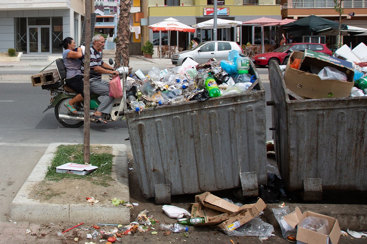 W Albanii istnieją tylko dwa wysypiska śmieci odpowiadające normom unijnym: w stolicy kraju Tiranie oraz w mieście Bushat na północy kraju. W rezultacie nie ma wprawdzie opłat środowiskowych, ale śmieci wypełniają zagłębienia terenu, zalegają na brzegach rzek i obrzeżach miejscowości. Przy tych dzikich wysypiskach krzątają się ludzie, którzy zajmują się sortowaniem odpadów.