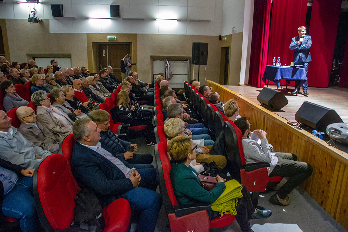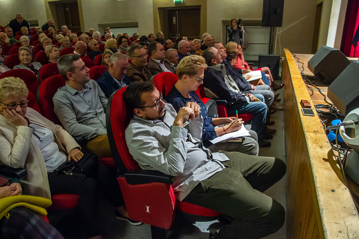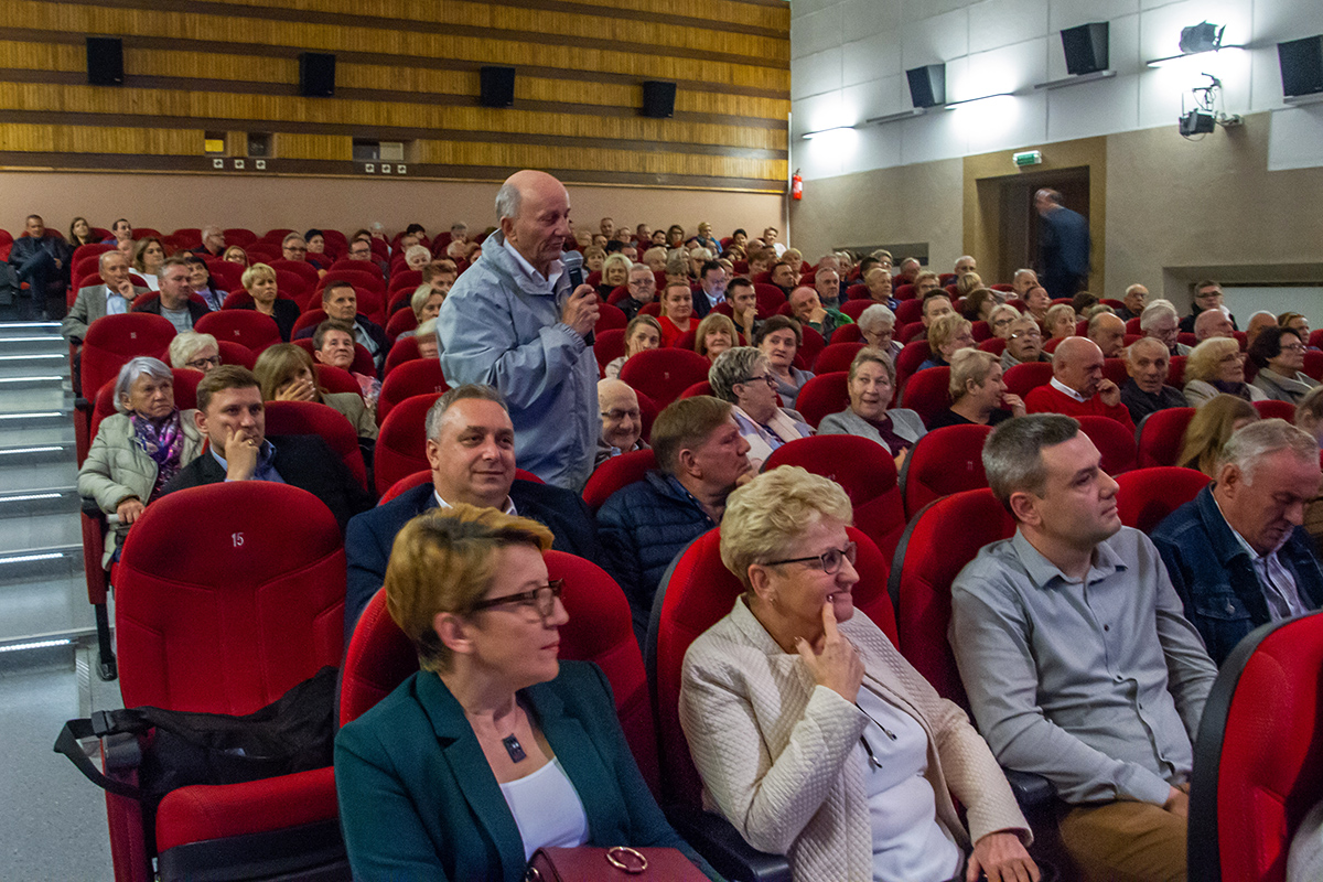 Spotkanie burmistrza z mieszkańcami przy pełnej sali kina „Mazowsze”