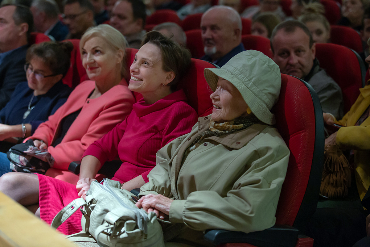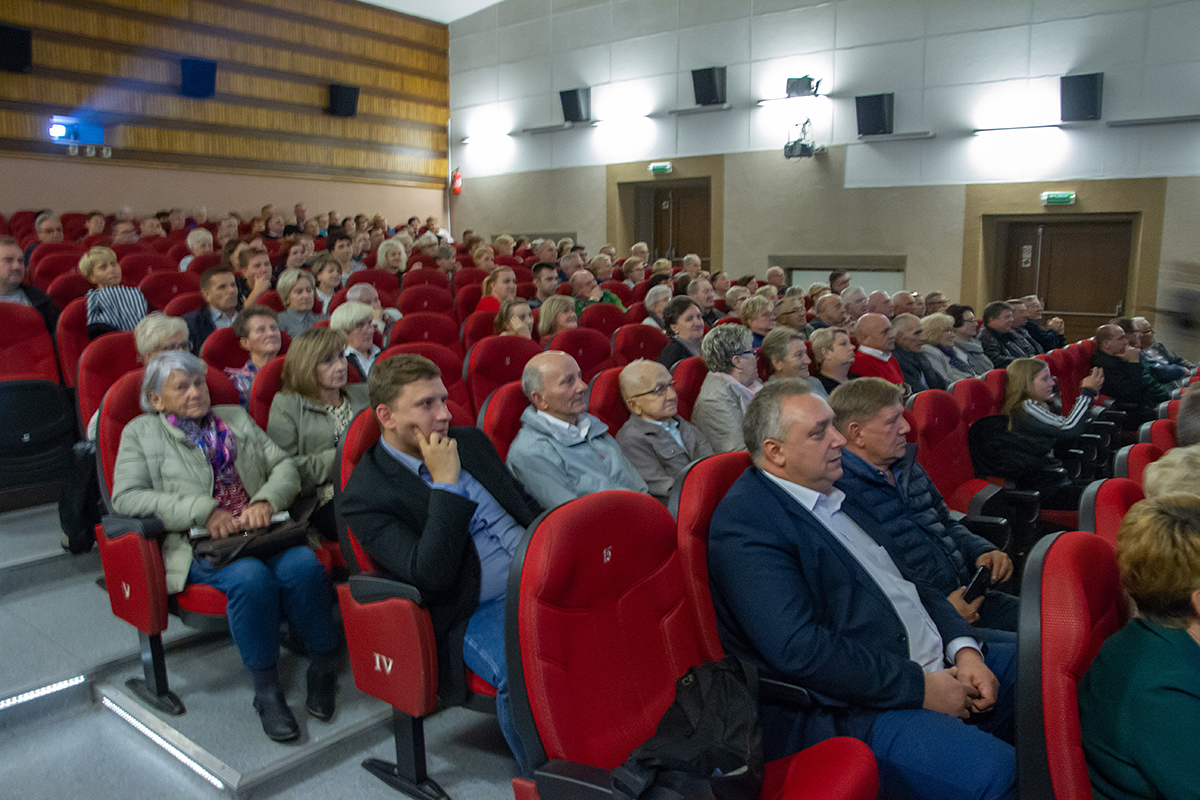 Spotkanie burmistrza z mieszkańcami przy pełnej sali kina „Mazowsze”.