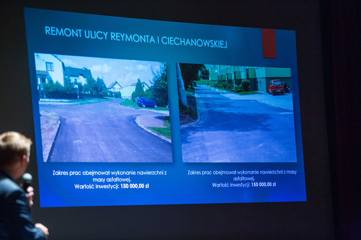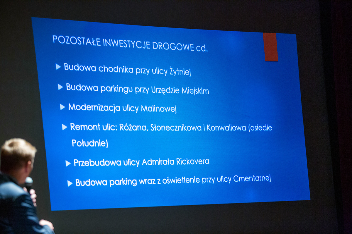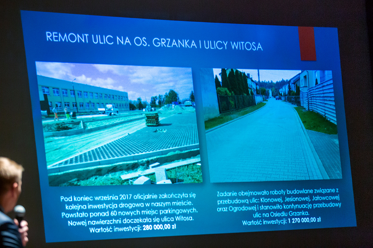 Burmistrz pokazał prezentację podsumowującą wszystkie inwestycje przeprowadzone od początku kadencji oraz wydatki z tym związane. Wszyscy uczestnicy spotkania otrzymali gazetkę, w której szczegółowo zostały opisane wszystkie największe wydarzenia i inwestycje.