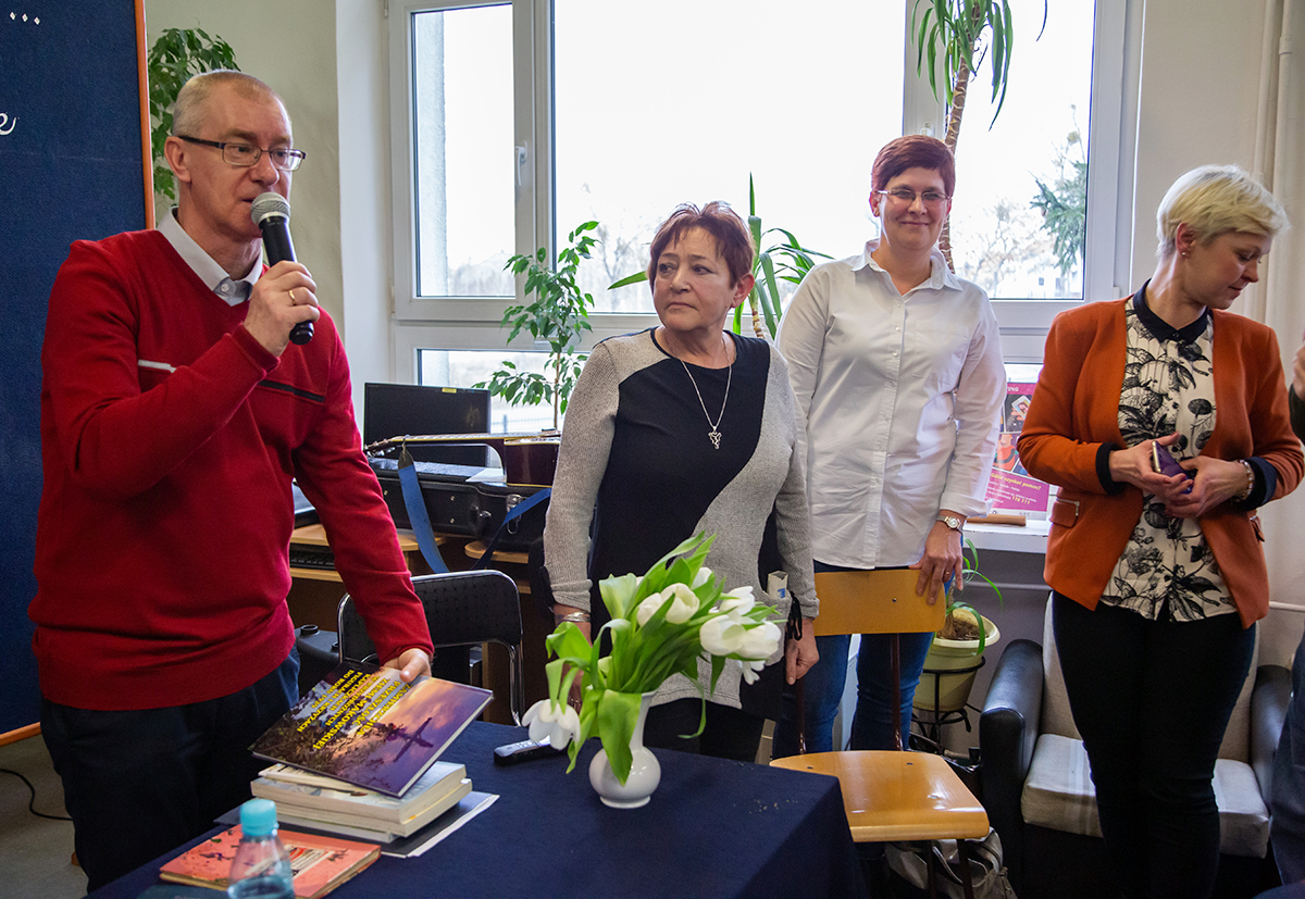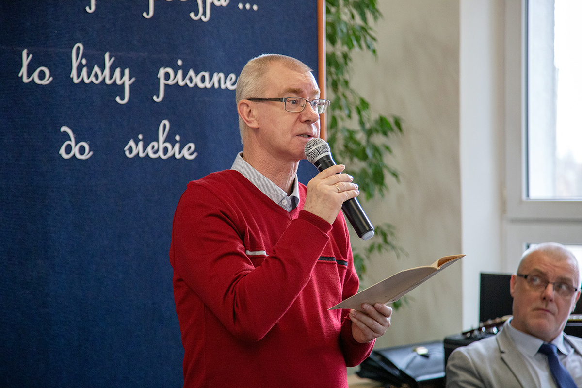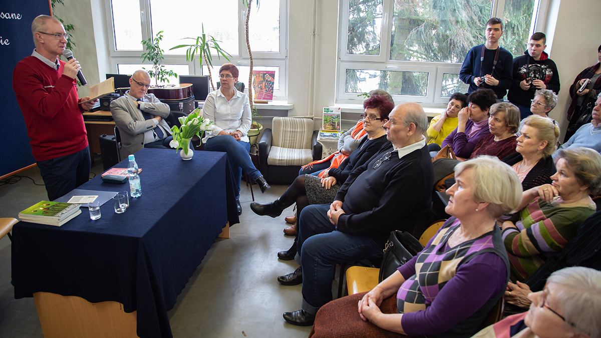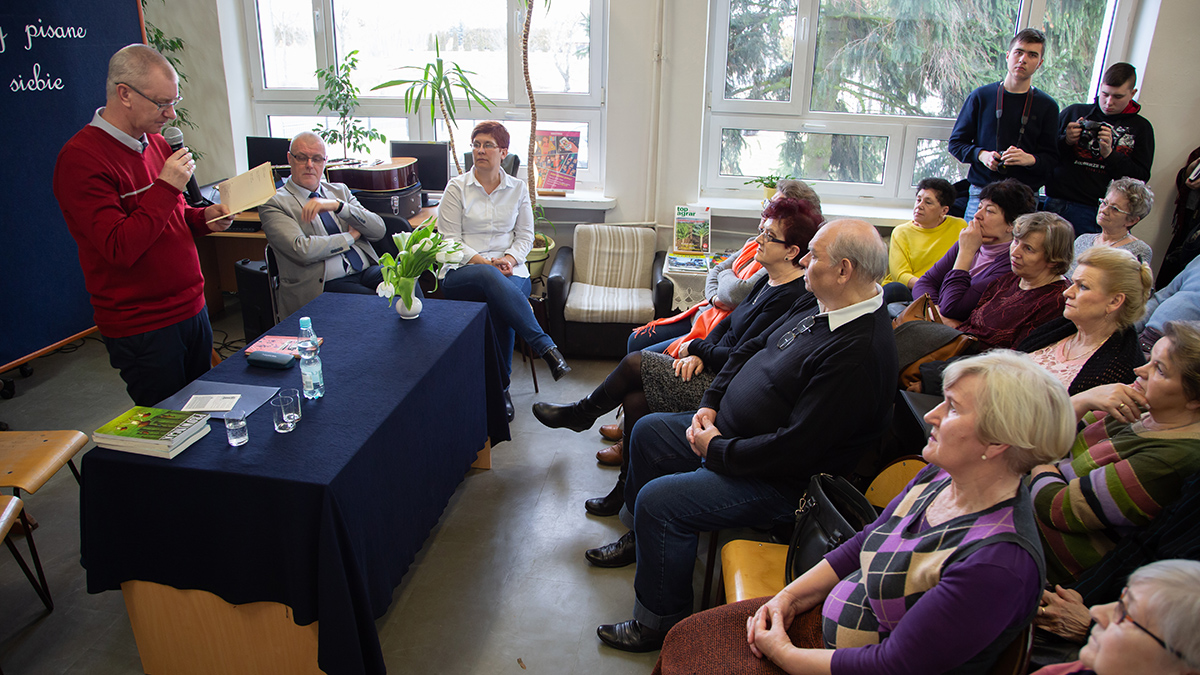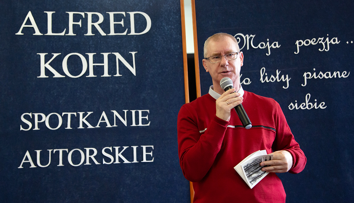 – Moja poezja nie jest rewolucyjna, nie zawiera w sobie określonych tendencji, nie idzie w wyznaczonym kierunku, nie jest za, nie jest przeciw w politycznej walce (…) to listy pisane do siebie – mówił Alfred Kohn do publiczności, która szczelnie wypełniała obszerną świetlicę Zespołu Szkół im. Żołnierzy Armii Krajowej.