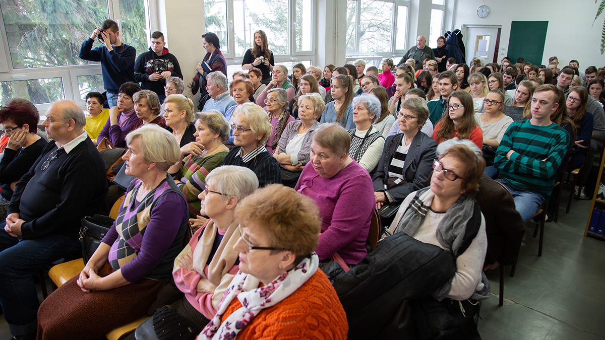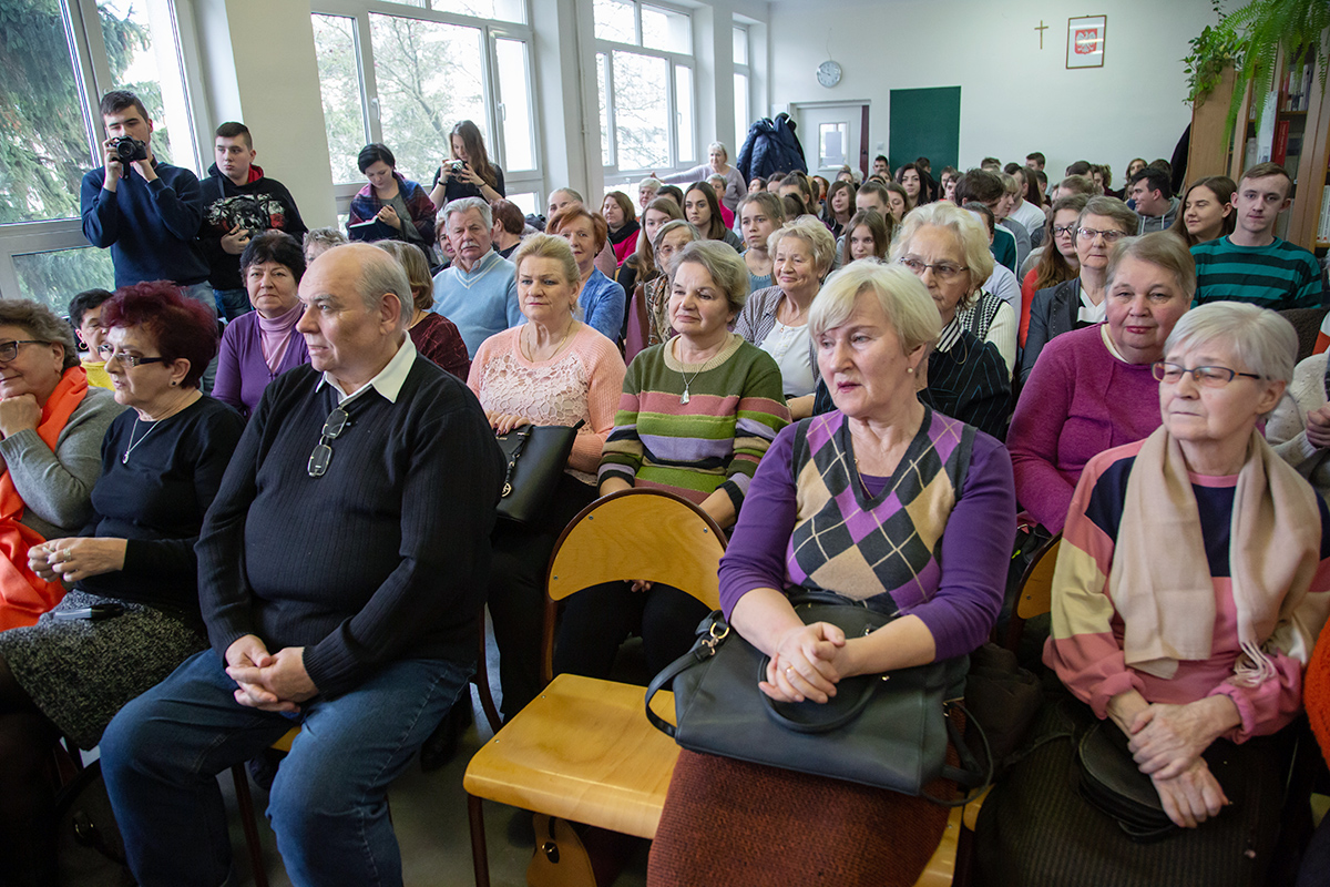 Na sali przeważali uczniowie ŻAK-a, ale liczni byli starsi makowianie, wśród nich słuchacze i słuchaczki Makowskiego Uniwersytetu Trzeciego Wieku.