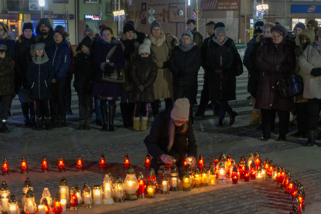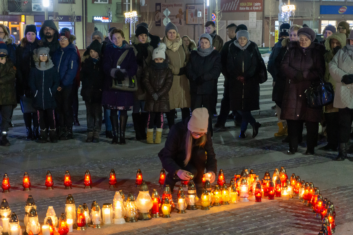 Zebrani zebrali się wokół ułożonego ze zniczy serca, przy którym stał portret zamordowanego prezydenta Gdańska, Pawła Adamowicza. Przypominany został życiorys i zawodowe dokonania Pawła Adamowicza. Następnie przemówił starosta powiatu makowskiego, Zbigniew Deptuła. Apelował o to, by śmierć Pawła Adamowicza skłoniła nas wszystkich do większej życzliwości wzajemnej.