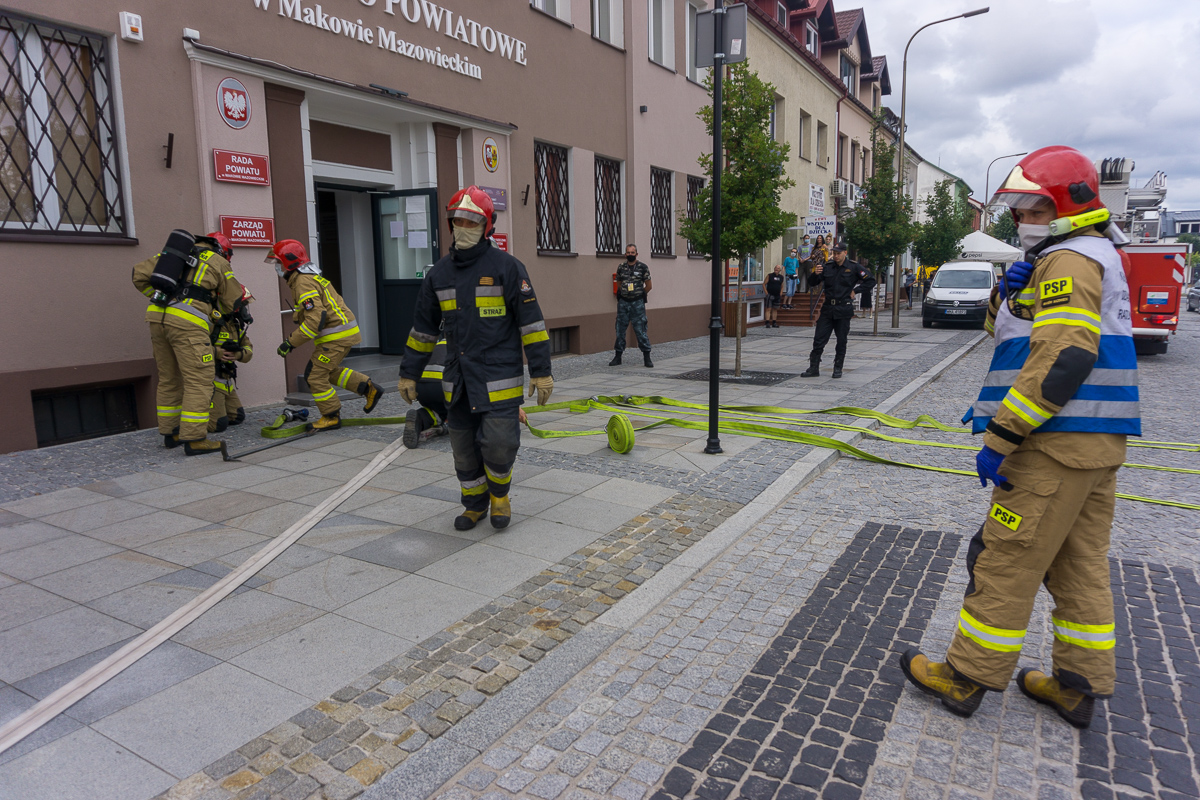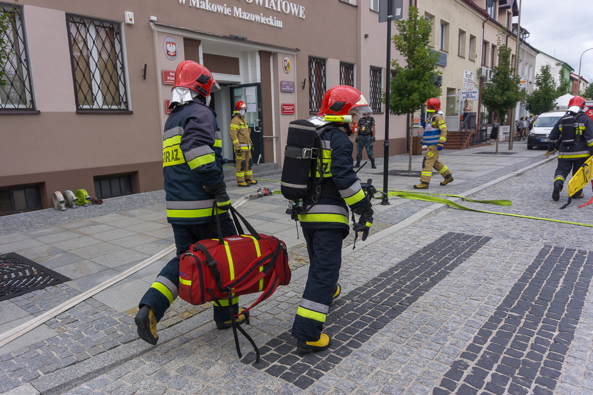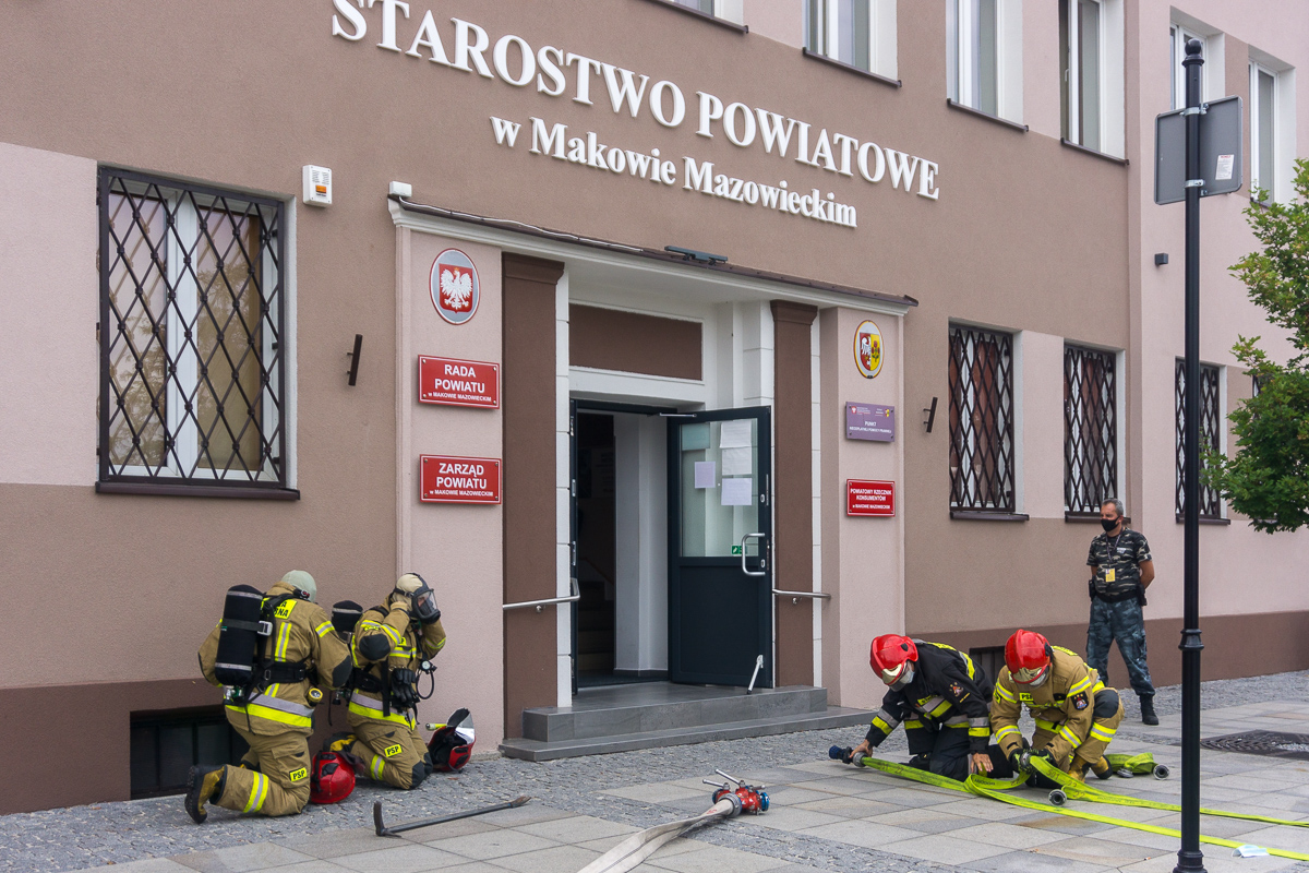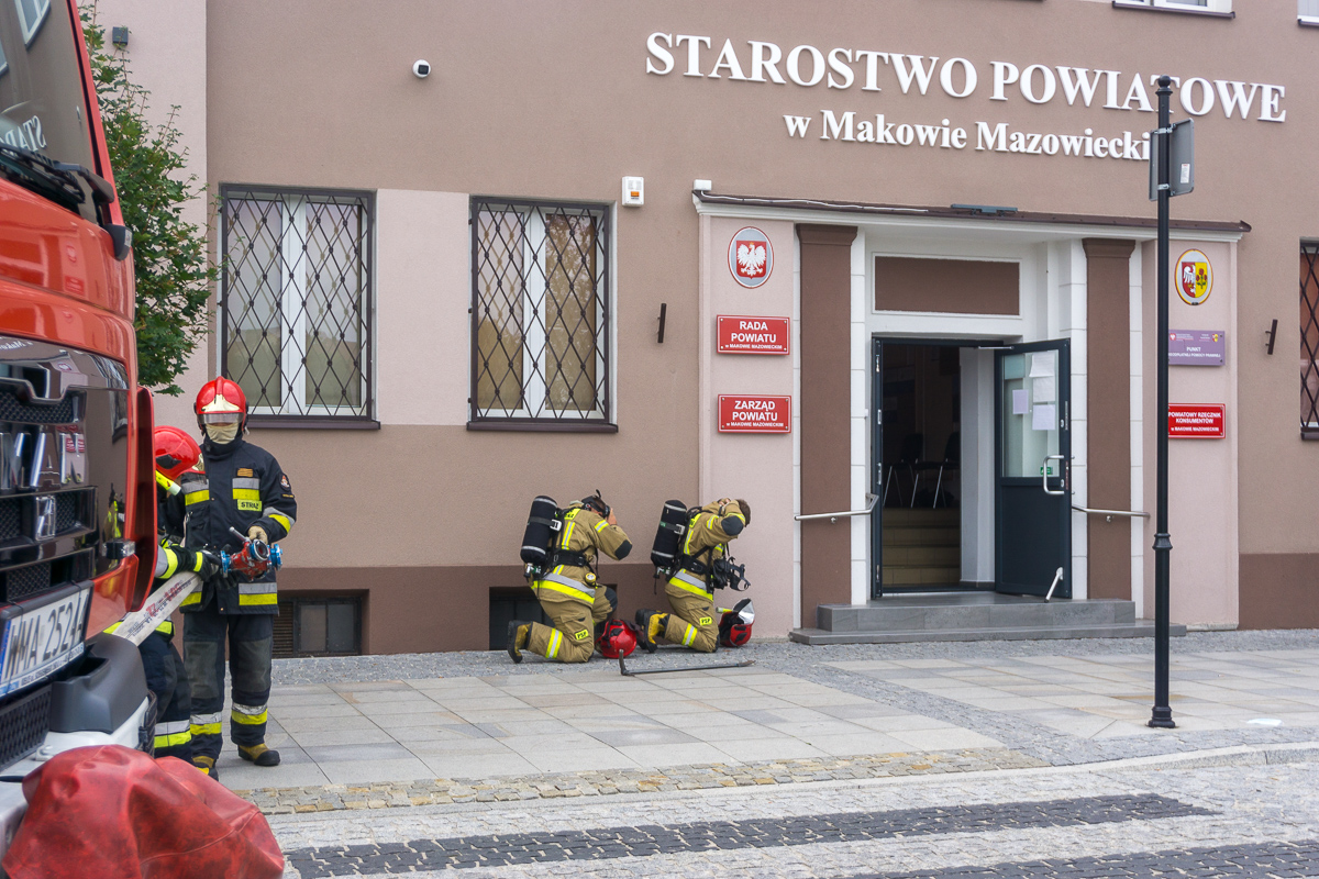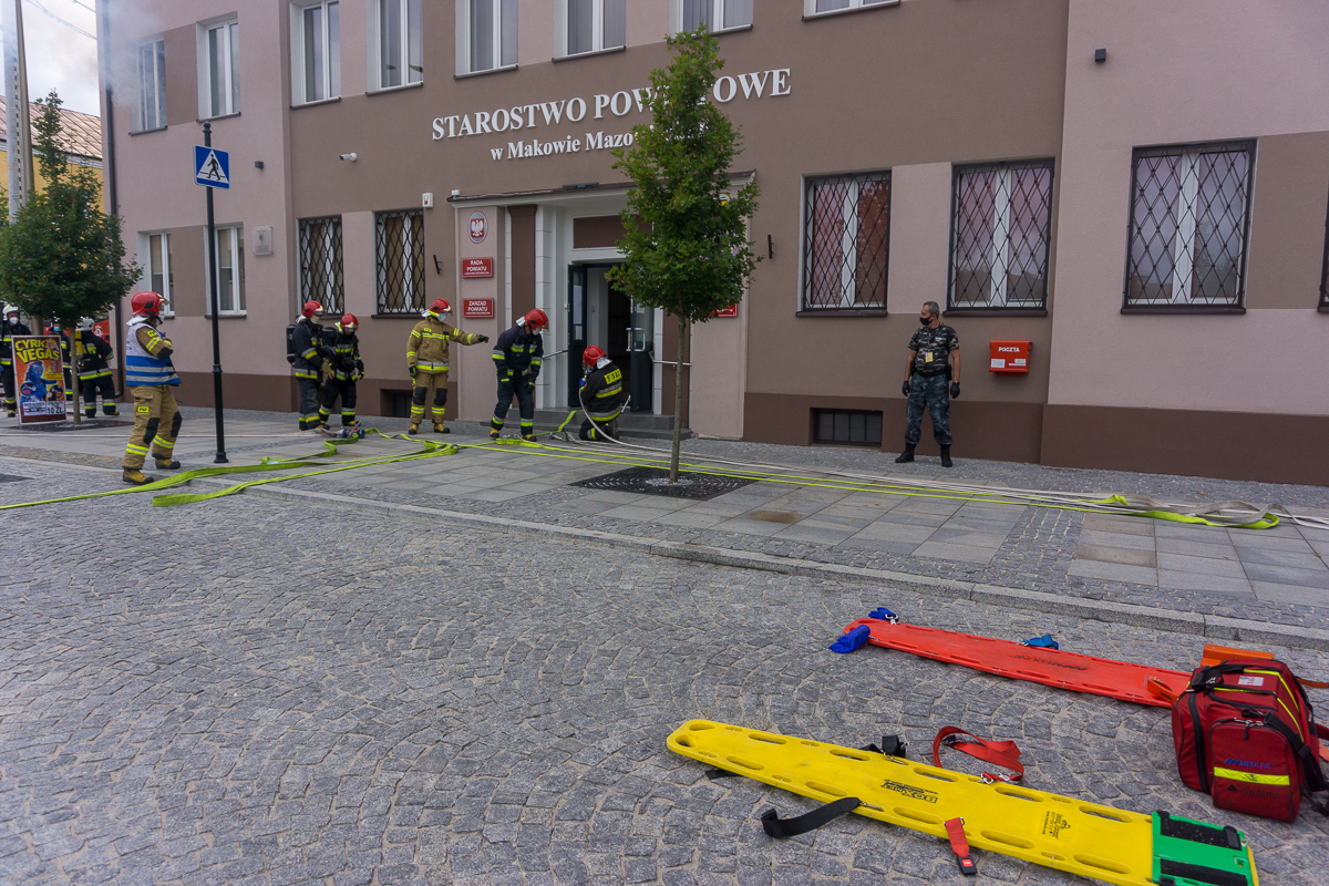 Efektowny początek weekendu mieli pracownicy makowskiego starostwa. W piątek 29 sierpnia o godzinie 15 z okien na piętrze zaczęły wydobywać się kłęby dymu. W chwilę później pod starostwo podjechały 3 strażackie wozy bojowe.