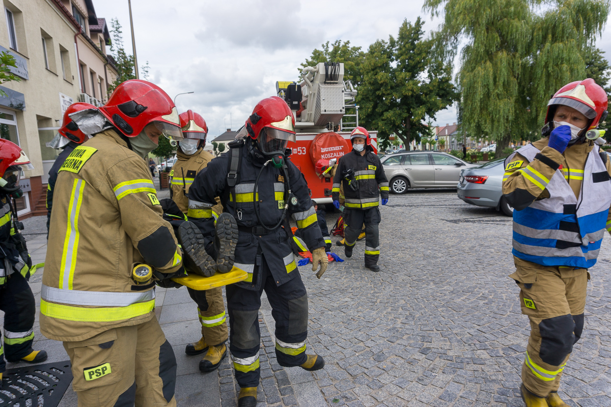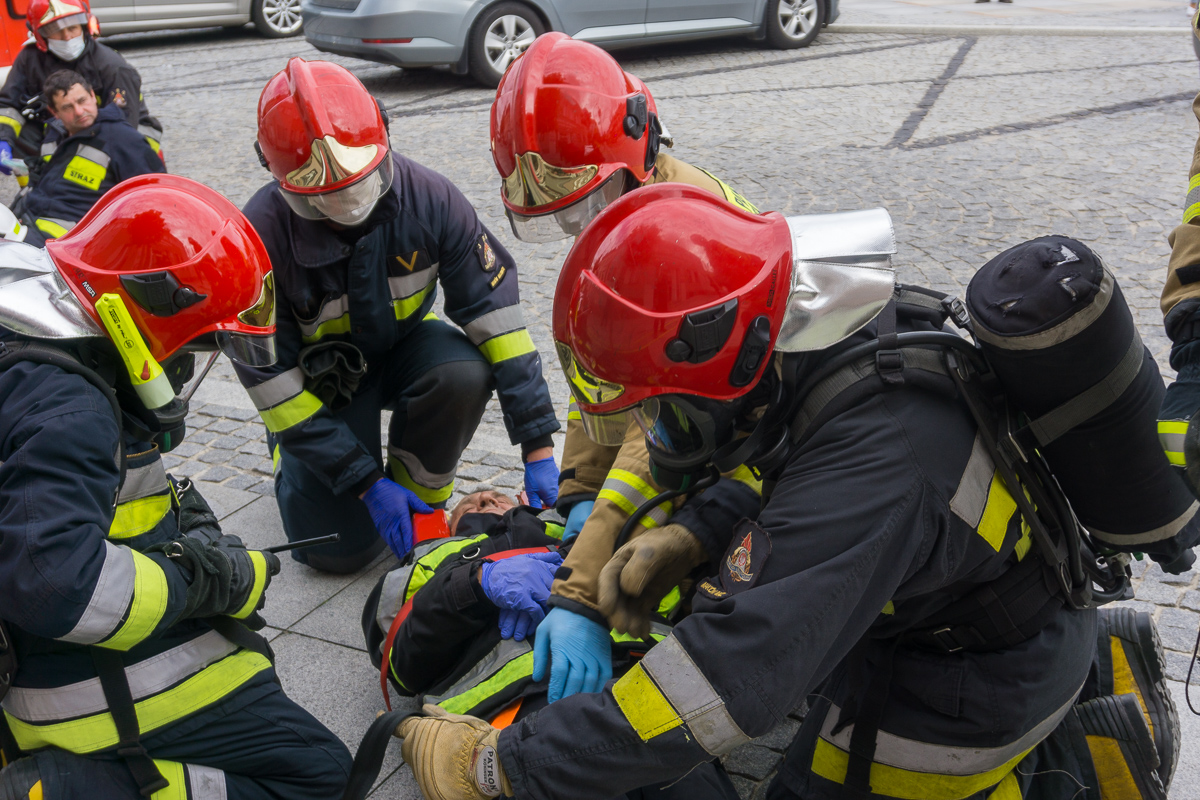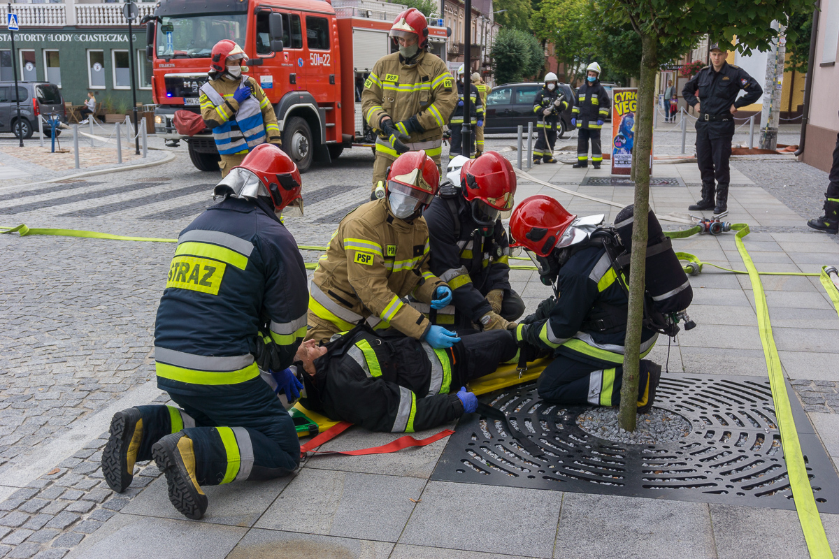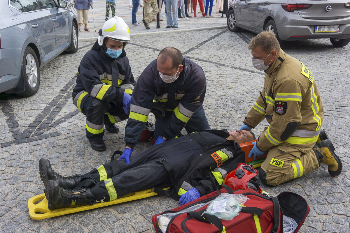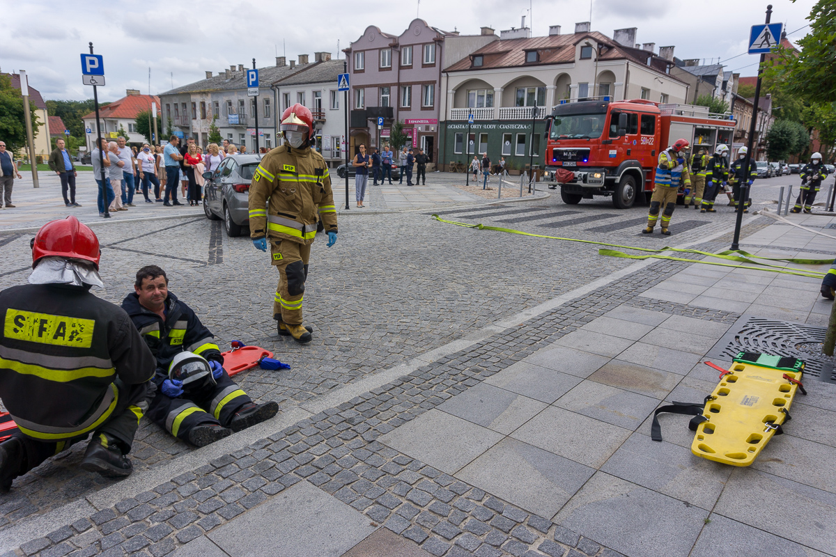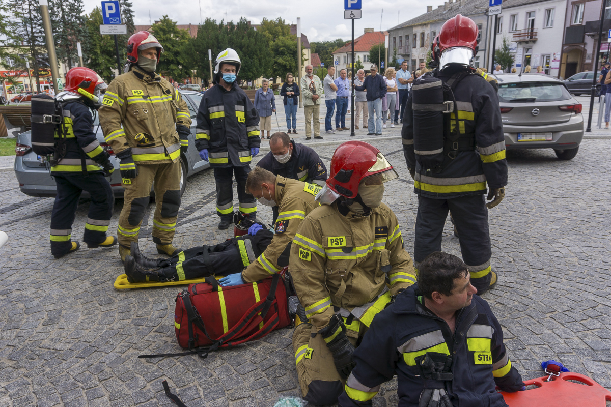 Pracownicy starostwa zostali ewakuowani na Rynek. Strażacy rozpoczęli akcję ratunkową. Z budynku wyprowadzono dwóch poszkodowanych. Udzielono im pierwszej pomocy medycznej. Po pół godzinie akcja dobiegła końca. Pracownicy wrócili do swoich biurek, a strażacy odjechali.
