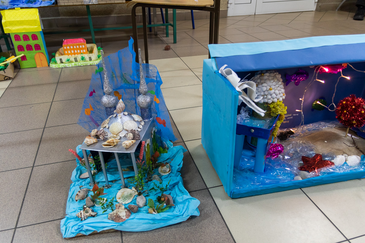 W hallu szkoły wystawione były prace inspirowane – zgodnie z nazwą projektu – baśniami, mitami i bajkami. Najwięcej makiet nawiązywało do niezapomnianej „Akademii pana Kleksa” Jana Brzechwy. Wiele było prac nawiązujących do „Wedźmina”, ale nie brakowało także tych, które nawiązywały do mitów – Heliosa i Faetona, Demeter i Kory. Była także zachwycająca praca nawiązująca do baśni o rybaku i złotej rybce. Jeszcze inna praca nawiązywała do słynnej bajki Adama Mickiewicza „Przyjaciele”.