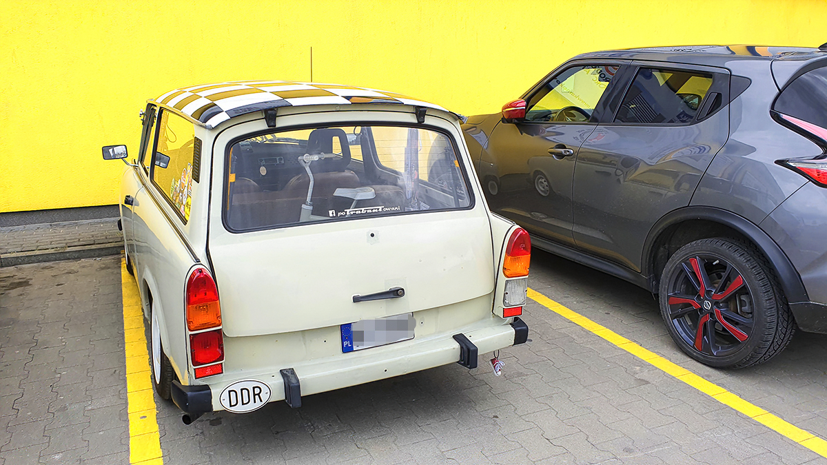 W sobotę 17 maja mieliśmy okazję podziwiać rzadki motoryzacyjny zabytek. Pod „Mrówką” zaparkowany był trabant kombi opatrzony na tylnym zderzaku tabliczkę DDR (czyli NRD – Niemiecka Republika Demokratyczna). Pojazd był znakomicie utrzymany.