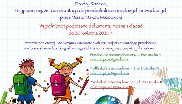 Mimo epidemii trwa rekrutacja do przedszkoli samorządowych. Dokumenty można składać do poniedziałku 20 kwietnia.