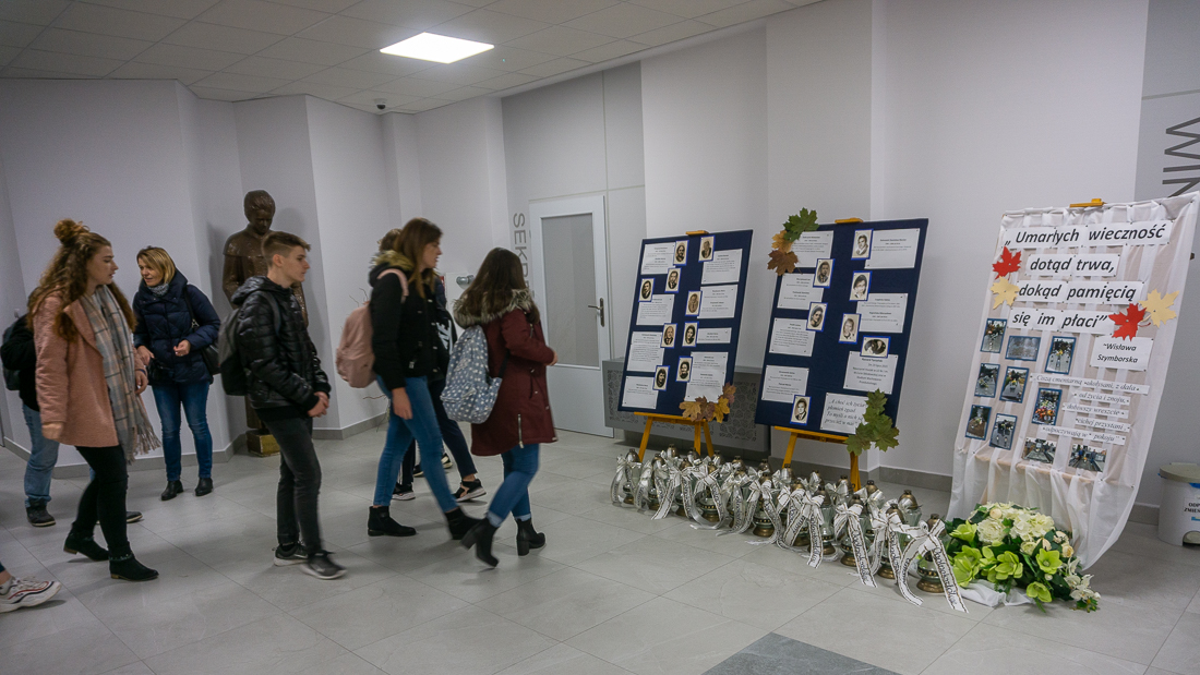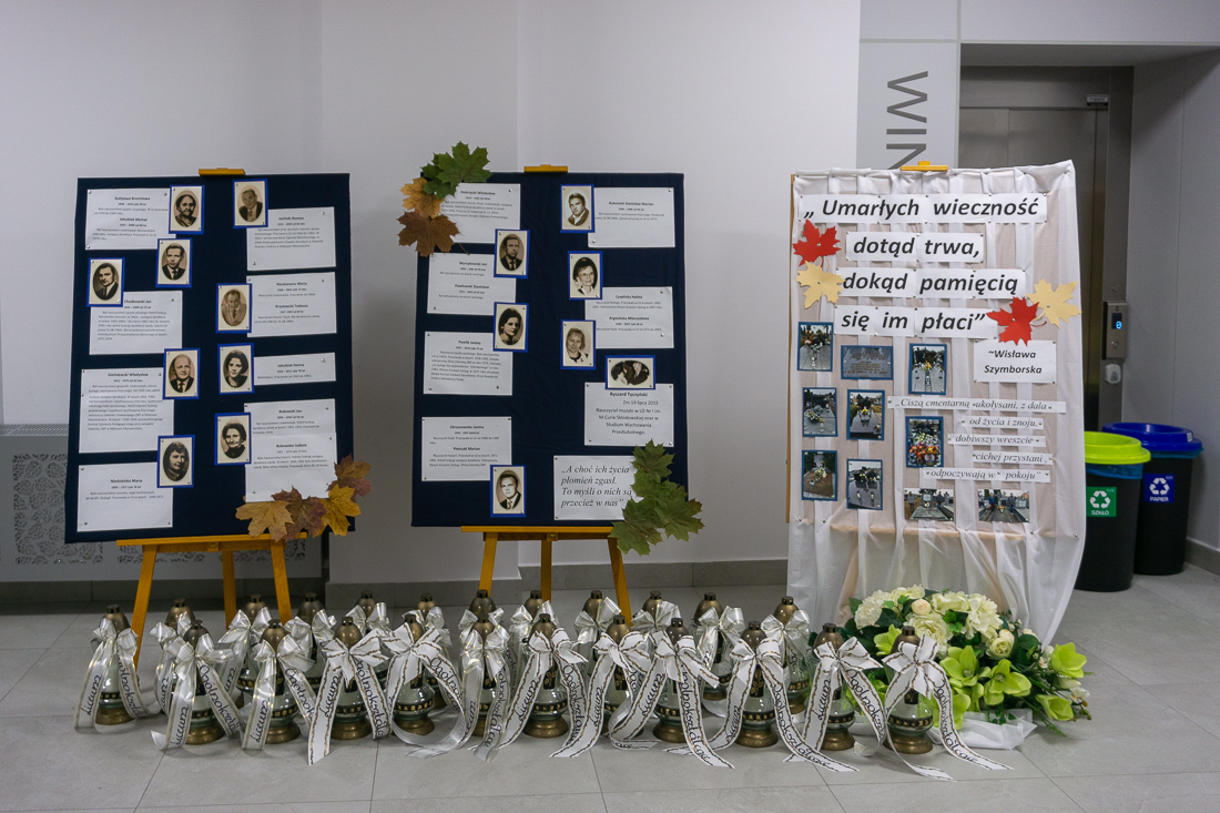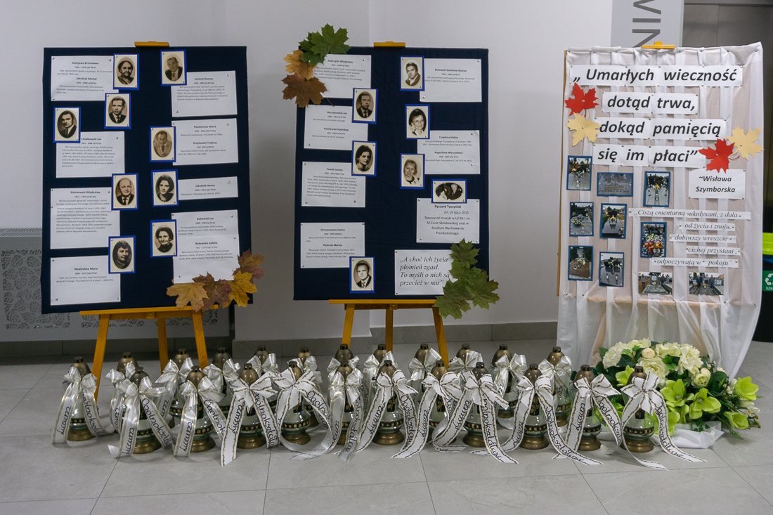 Ekspozycję poświęconą zmarłym nauczycielom przygotowali uczniowie pod kierunkiem nauczycielek: Agnieszki Bobińskiej i Ewy Rogalskiej.