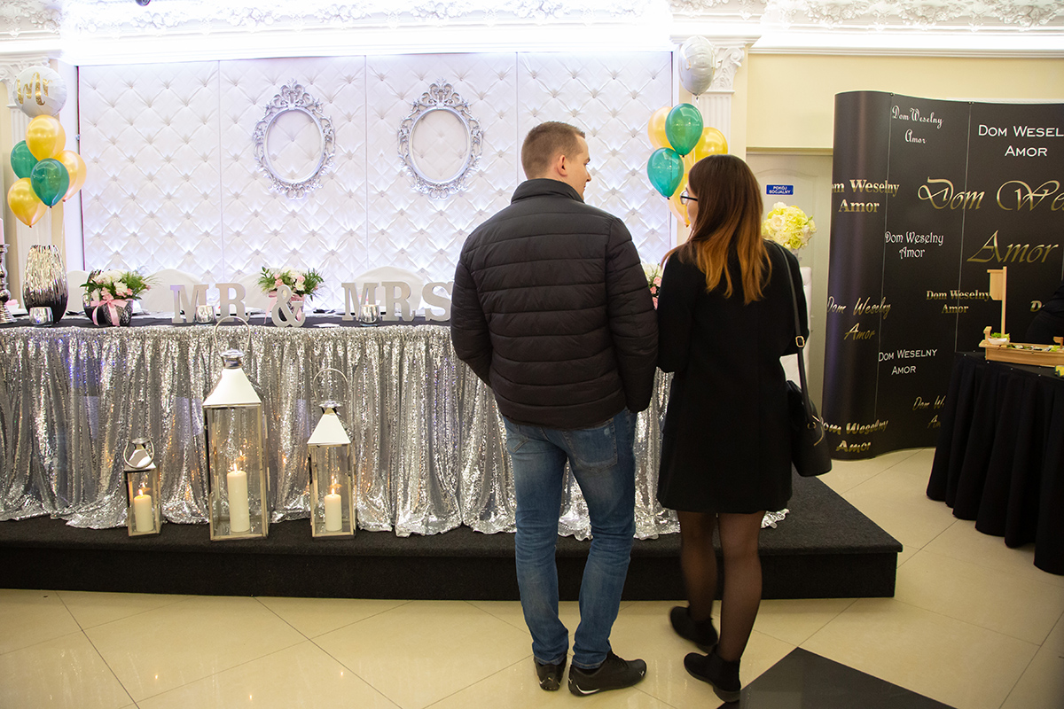 Zazwyczaj przebieg wesela jest tradycyjny, ale dochodzą też nowości, atrakcje dla gości weselnych. Np. foto budka, pokazy sushi, pokazy barmańskie. Na targach my to pokazujemy, żeby młodzi ludzie mogli sobie wybrać coś i uatrakcyjnić ten wyjątkowy dzień ślubu i wesela. Kiedy pierwszy raz organizowaliśmy targi, myśleliśmy o tym, żeby stworzyć coś małego, coś co pomoże ludziom w organizacji wesela.