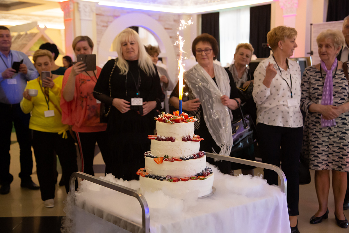 Wielką atrakcją był zaprezentowany w oparach ciekłego azotu tort weselny od właścicieli Domu Weselnego Amor, zaserwowany pod koniec imprezy.