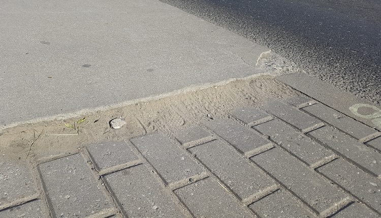 Napisał do nas nasz Czytelnik: „od bardzo wielu lat jak się kończy chodnik z kostki brukowej na moście przy sklepie p. Dobrzyńskich zaczyna się chodnik betonowy. Na ich połączeniu  jest uskok 5-6 cm. O tyle niżej kostka betonowa jest położona od chodnik betonowego. Setki ludzi tym chodnikiem chodzi, jeździ z małymi dziećmi z wózkami, a uskok jak był tak jest”.