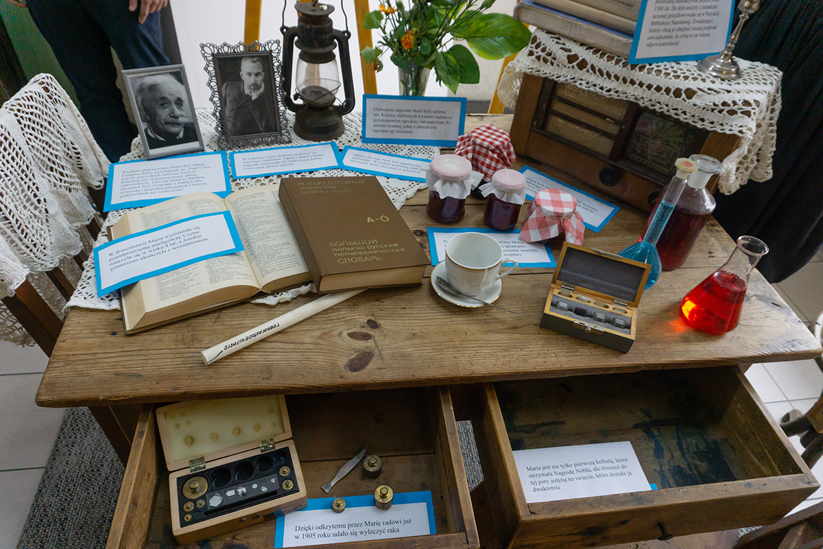 Wystawa poświęcona Marii Skłodowskiej-Curie.