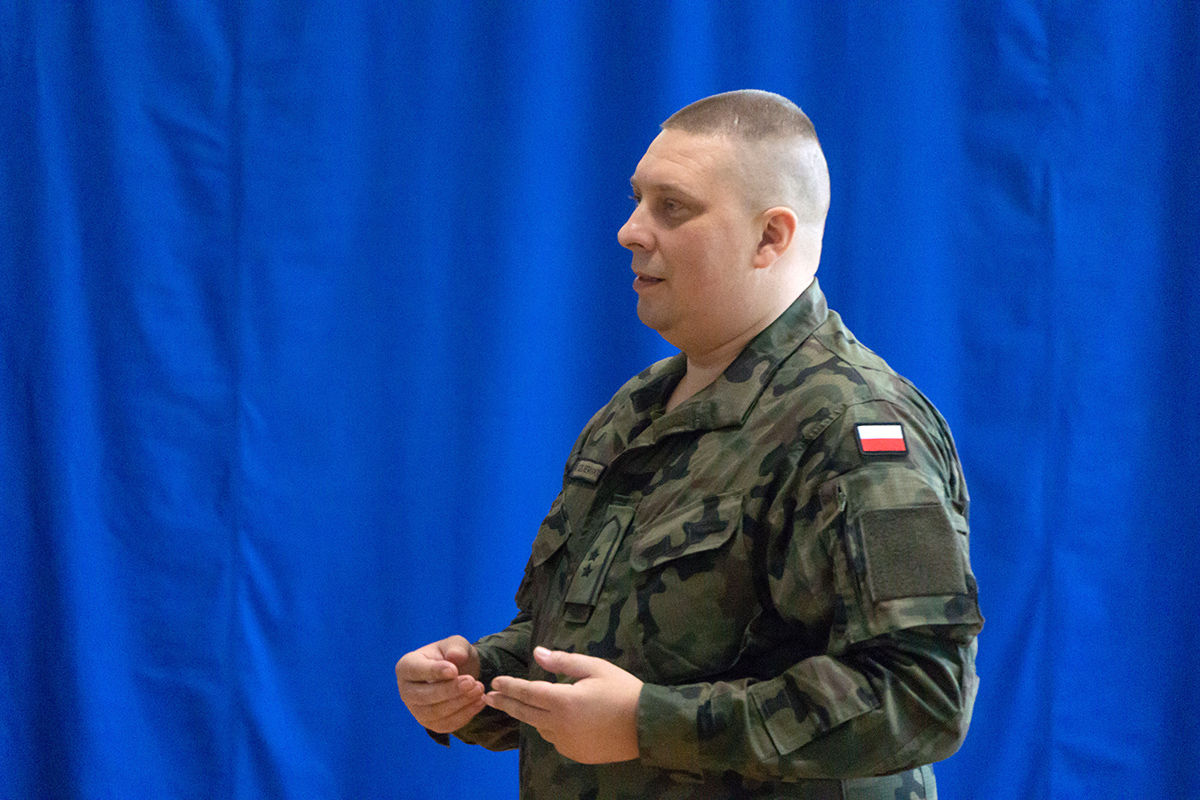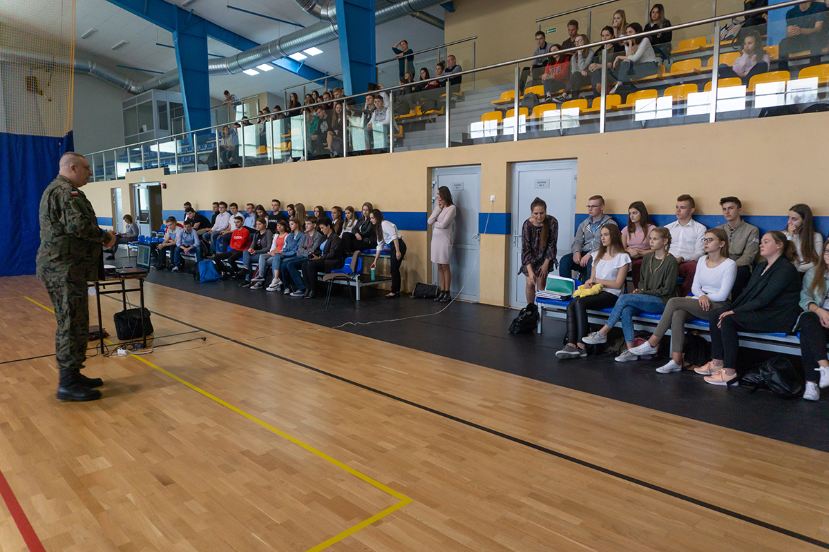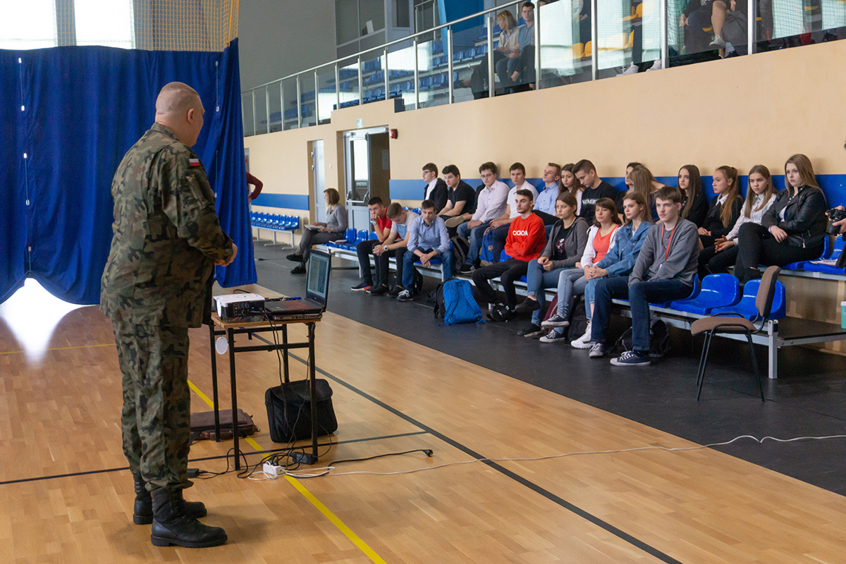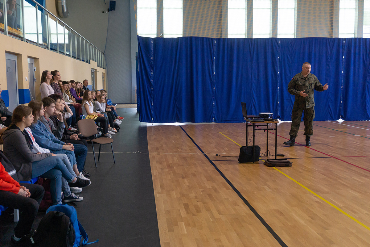 W południe rozpoczął się wykład gościa Dnia Patronki – starszego chorążego Jacka Mierzejewskiego. Prelegent mówił o nowoczesnych metodach analitycznych badania próbek środowiskowych. Prelekcję na temat polimerów wygłosiła również uczennica LO Patrycja Tyburska, działająca w fundacji Przyszłość w Nauce.