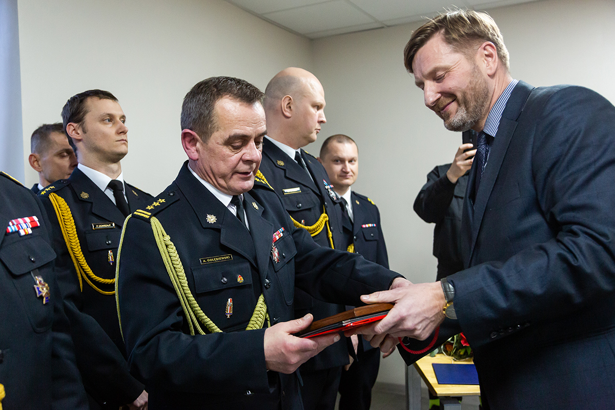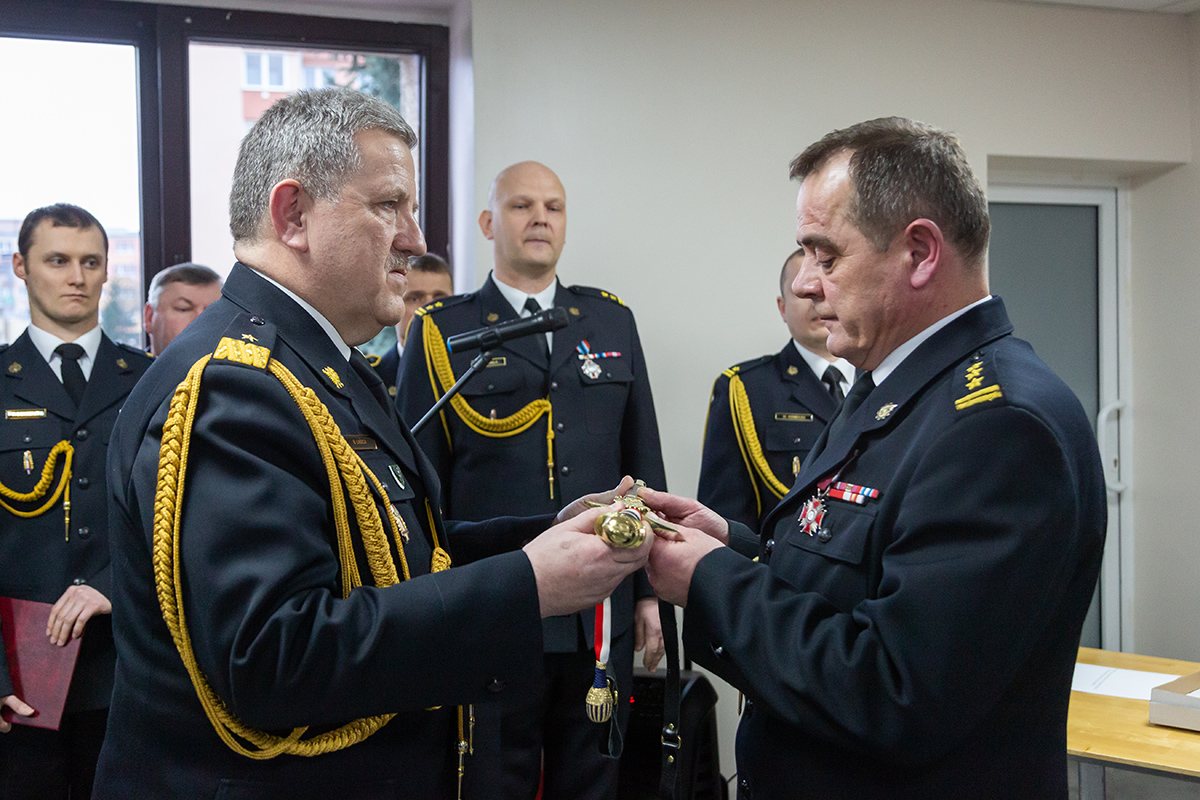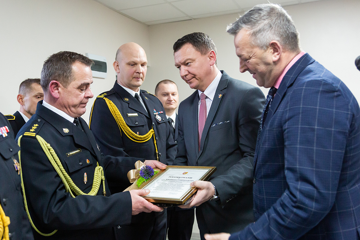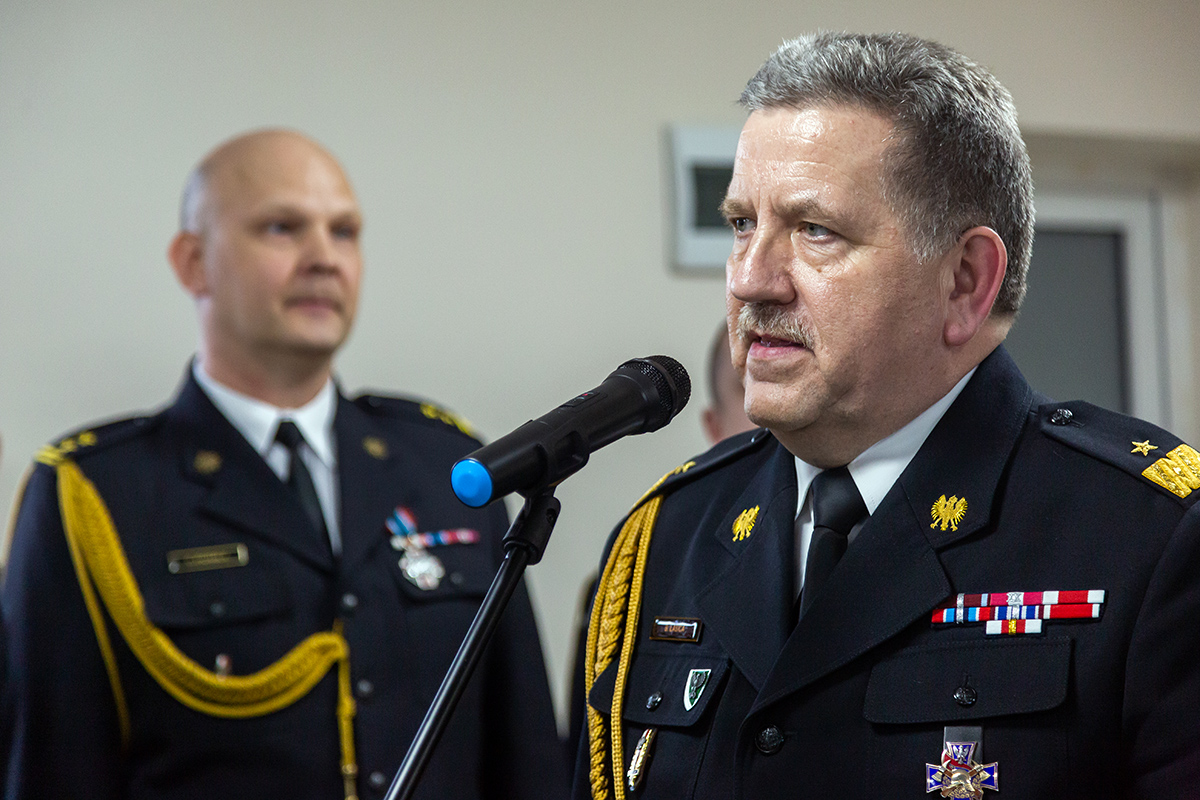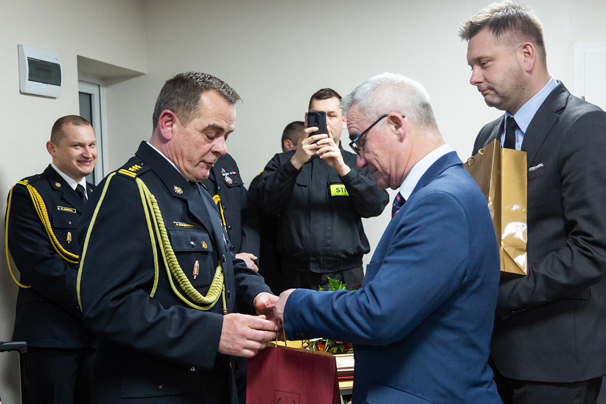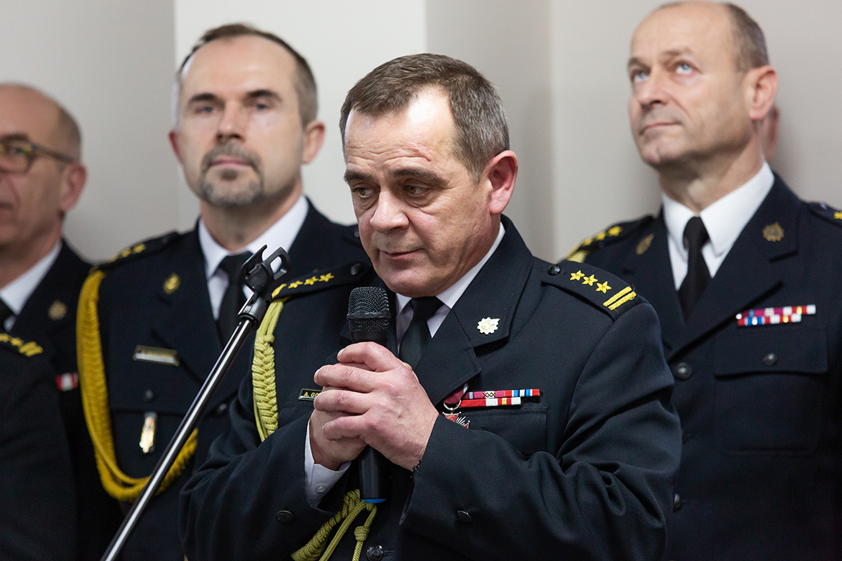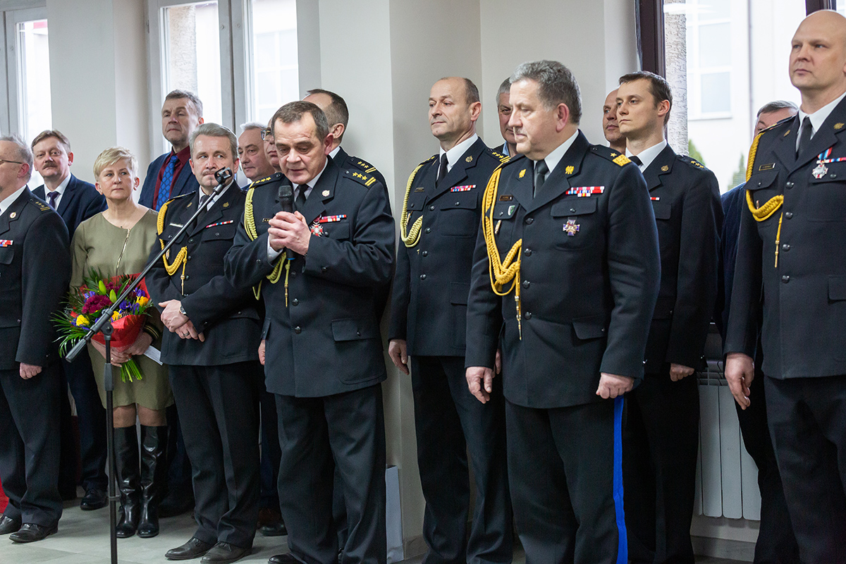 Podczas uroczystego apelu, Komendant Wojewódzki Państwowej Straży Pożarnej nadbryg. Bogdan Łasica serdecznie podziękował Arkadiuszowi Gołębiewskiemu za prawie 35 lat służby na rzecz polskiego pożarnictwa i ochrony przeciwpożarowej. W swoim wystąpieniu wspomniał także o bardzo dobrej współpracy z jednostkami OSP oraz jednostkami samorządu terytorialnego.