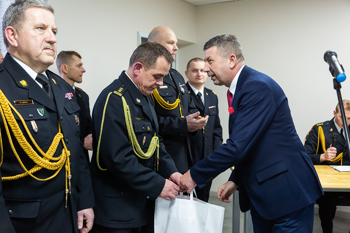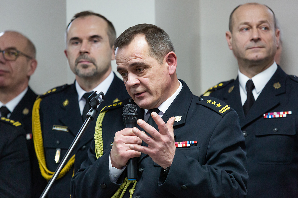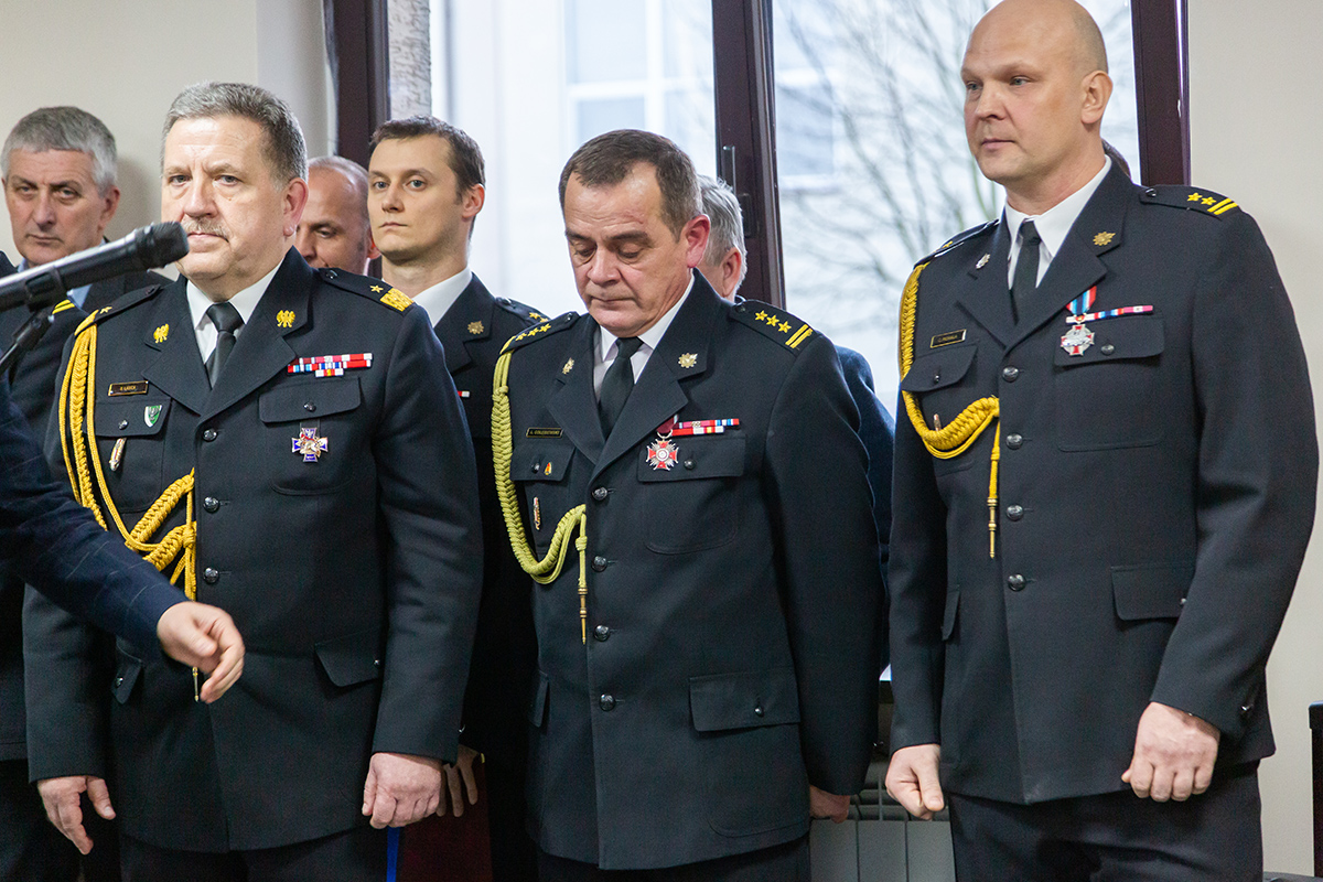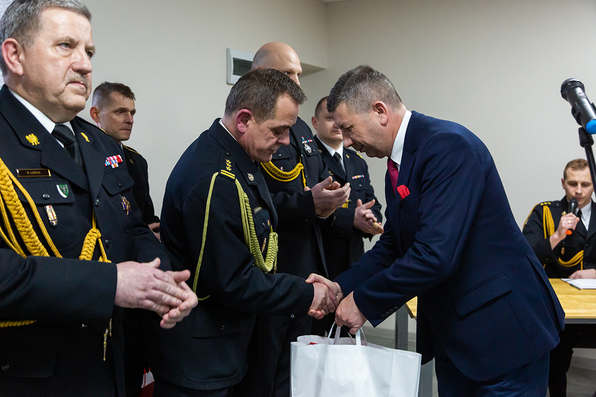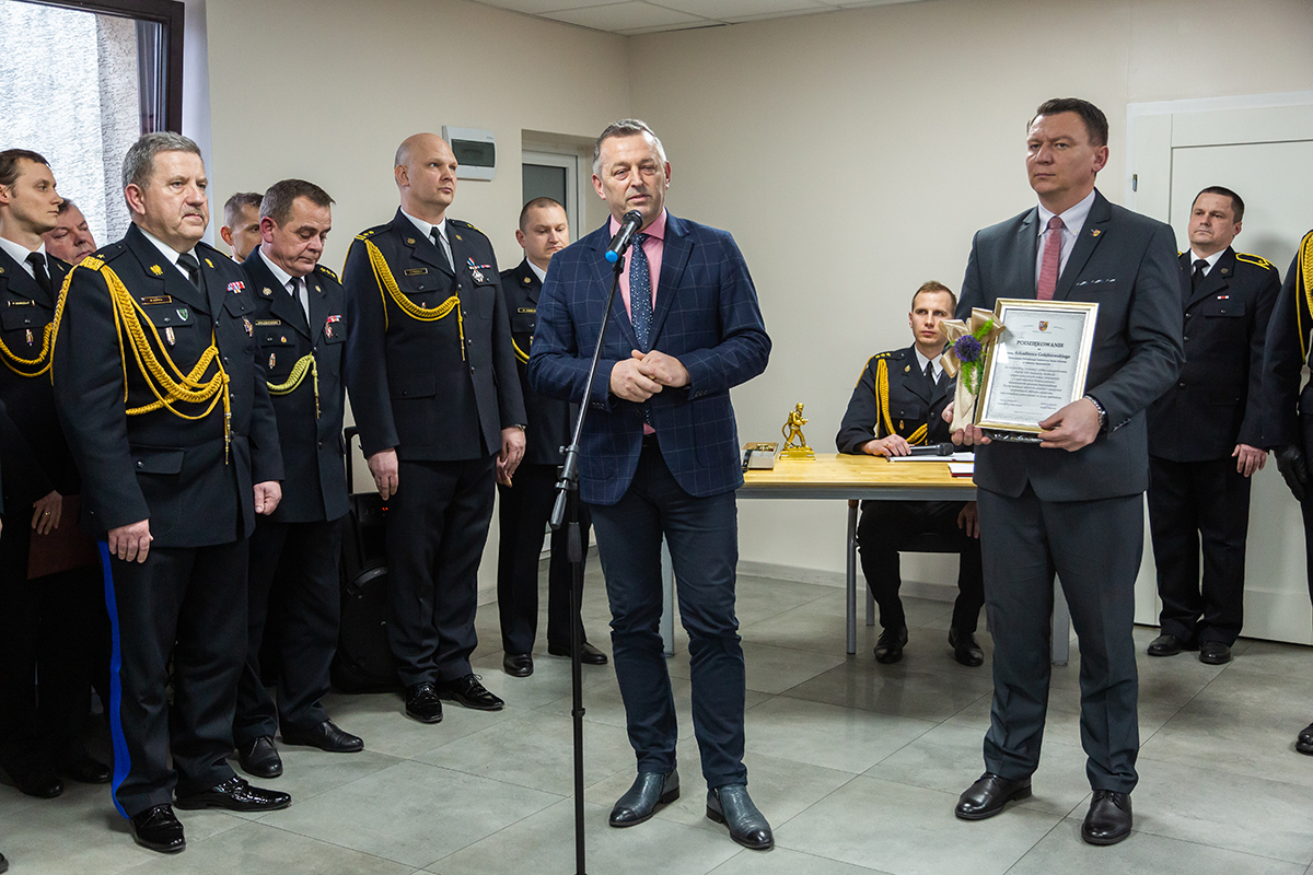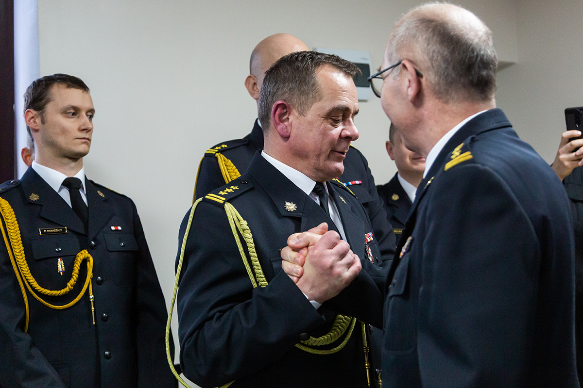 Podczas uroczystego apelu, Komendant Wojewódzki Państwowej Straży Pożarnej nadbryg. Bogdan Łasica serdecznie podziękował Arkadiuszowi Gołębiewskiemu za prawie 35 lat służby na rzecz polskiego pożarnictwa i ochrony przeciwpożarowej. W swoim wystąpieniu wspomniał także o bardzo dobrej współpracy z jednostkami OSP oraz jednostkami samorządu terytorialnego.