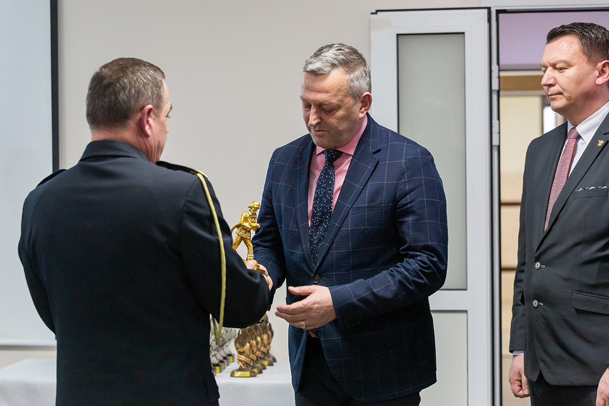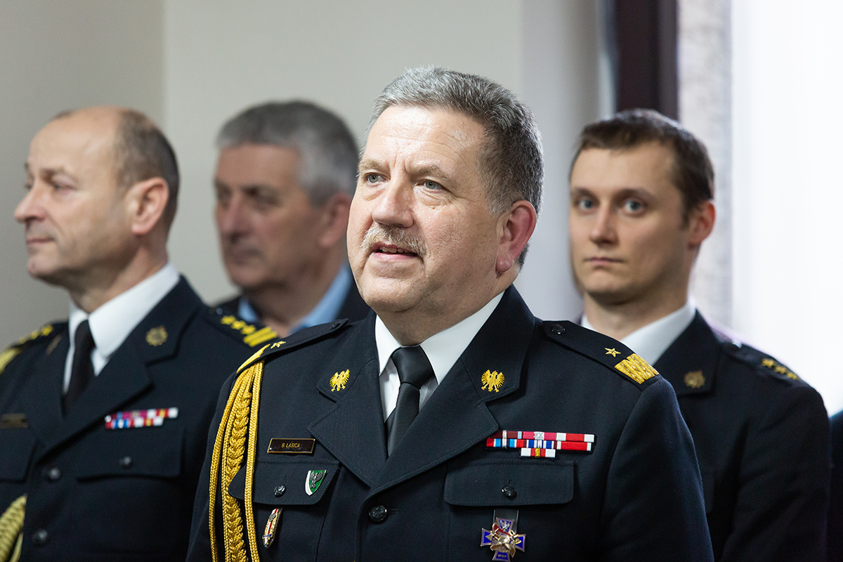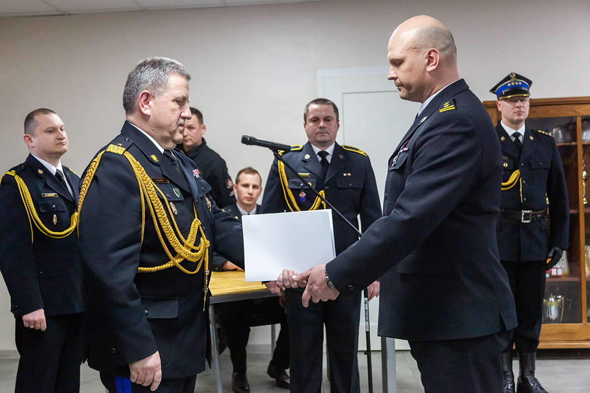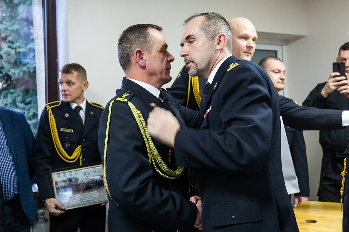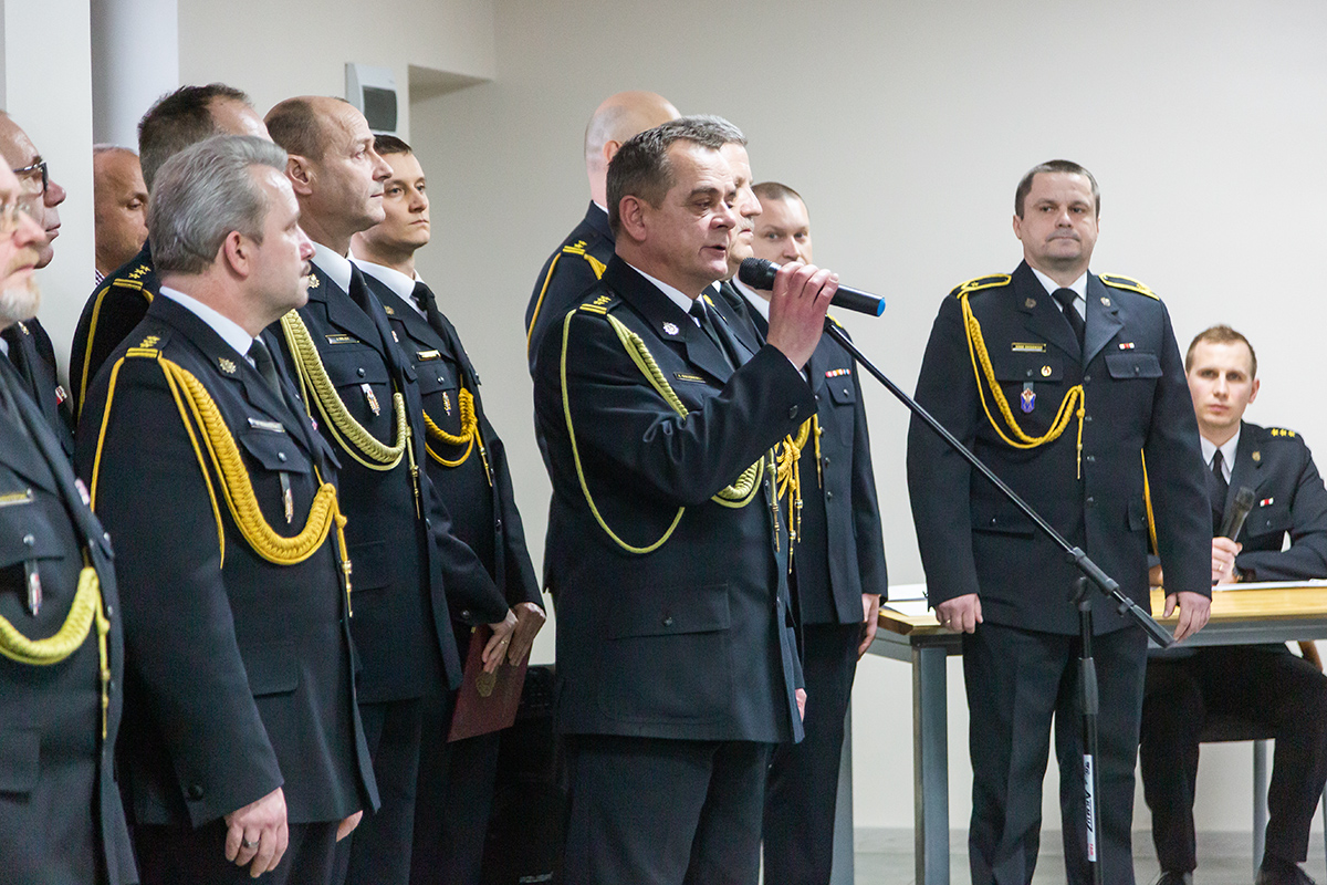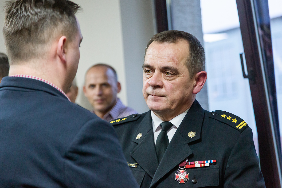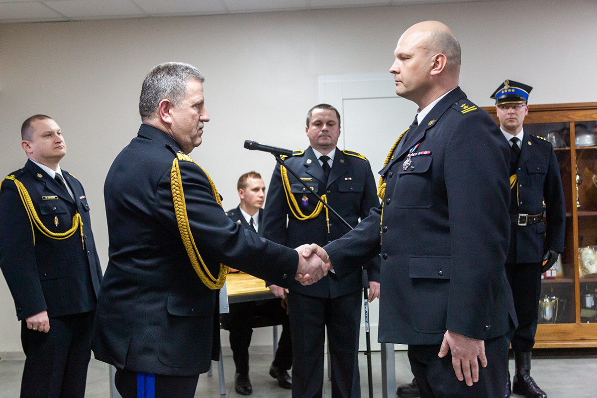 Podczas uroczystego apelu, Komendant Wojewódzki Państwowej Straży Pożarnej nadbryg. Bogdan Łasica serdecznie podziękował Arkadiuszowi Gołębiewskiemu za prawie 35 lat służby na rzecz polskiego pożarnictwa i ochrony przeciwpożarowej. W swoim wystąpieniu wspomniał także o bardzo dobrej współpracy z jednostkami OSP oraz jednostkami samorządu terytorialnego.