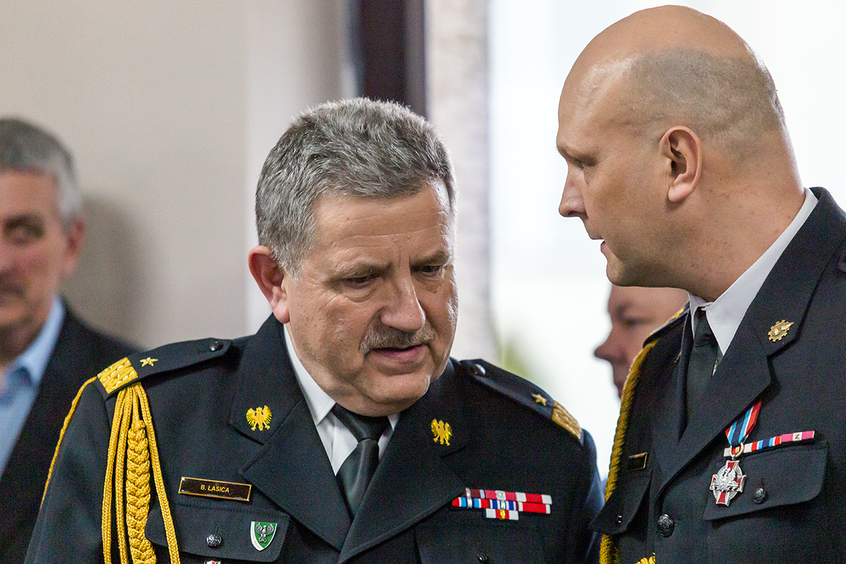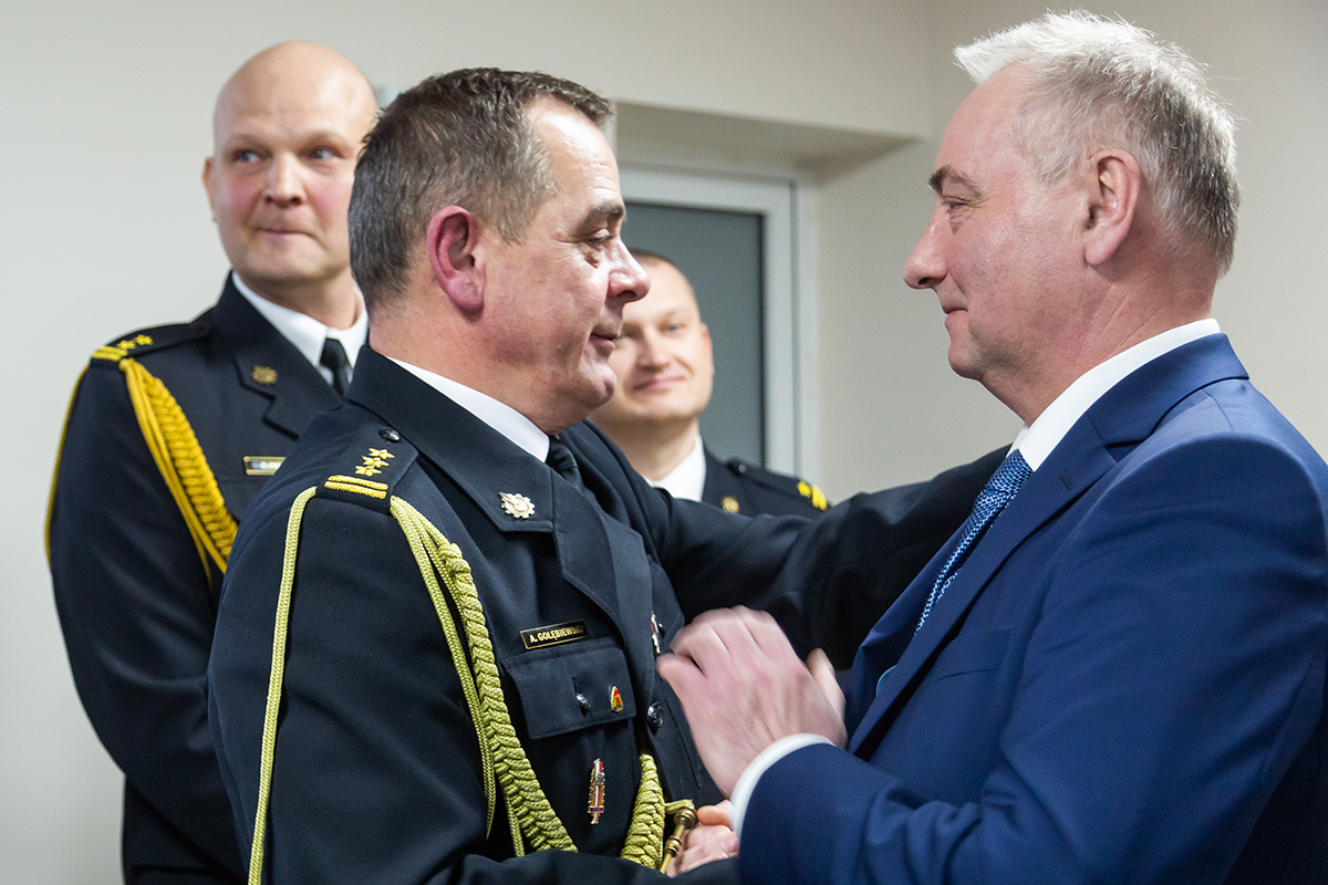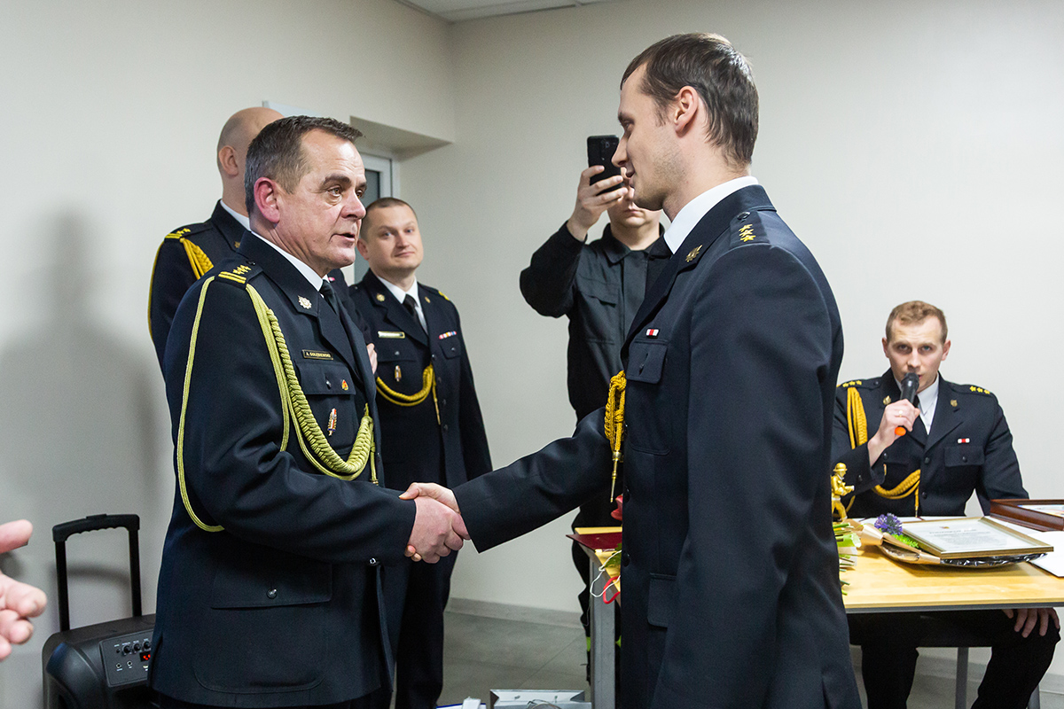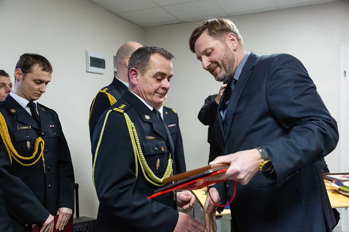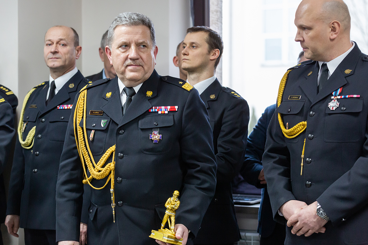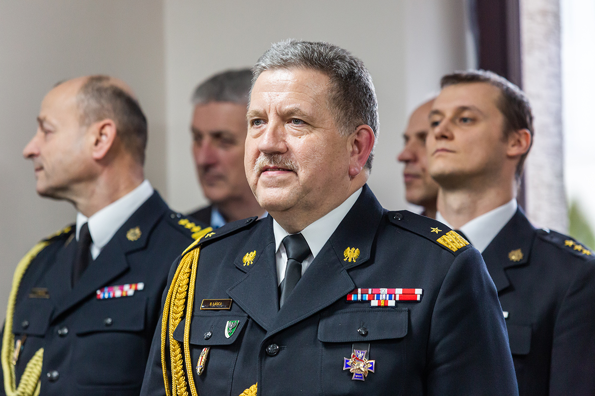 Podczas uroczystego apelu, Komendant Wojewódzki Państwowej Straży Pożarnej nadbryg. Bogdan Łasica serdecznie podziękował Arkadiuszowi Gołębiewskiemu za prawie 35 lat służby na rzecz polskiego pożarnictwa i ochrony przeciwpożarowej. W swoim wystąpieniu wspomniał także o bardzo dobrej współpracy z jednostkami OSP oraz jednostkami samorządu terytorialnego.