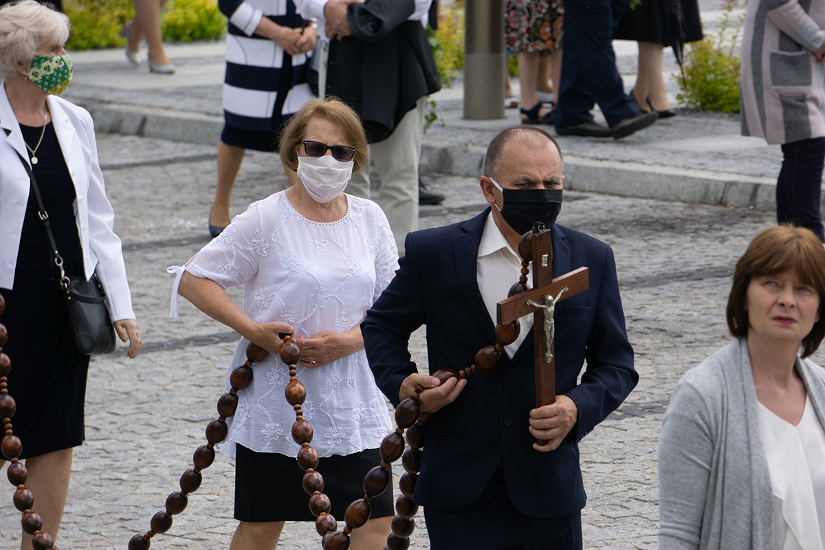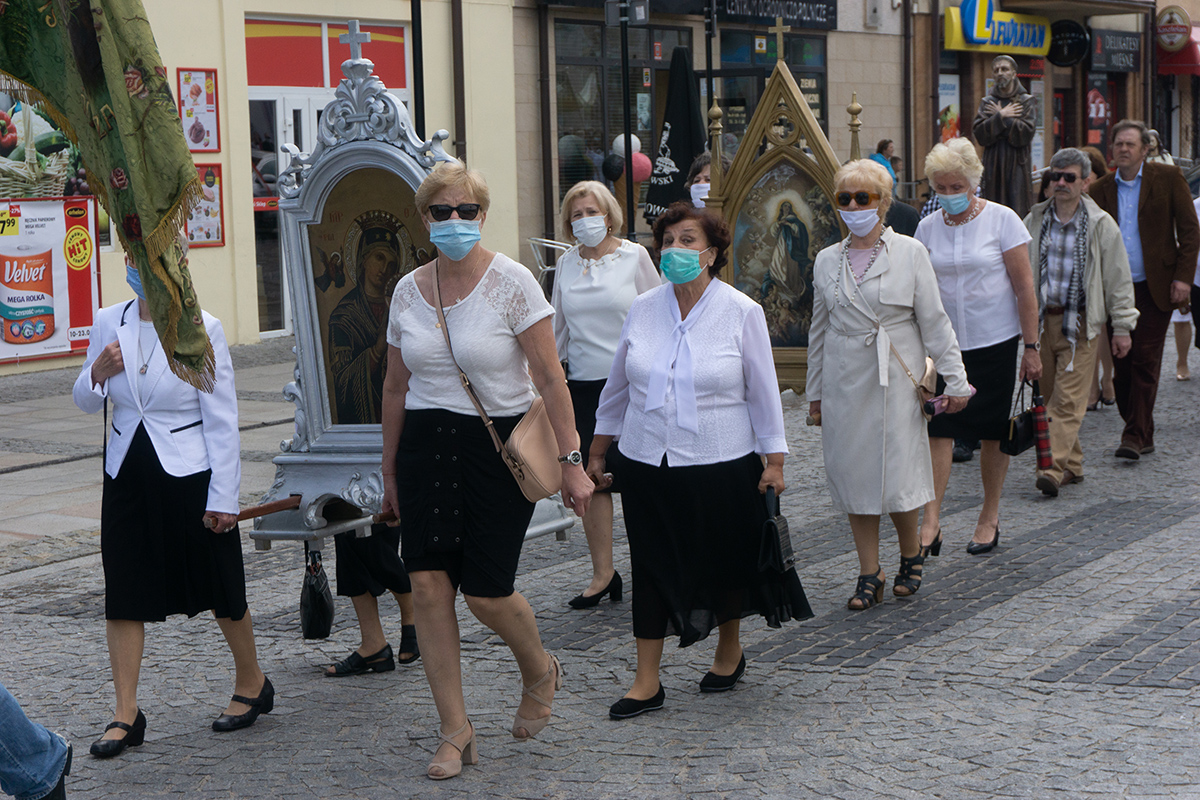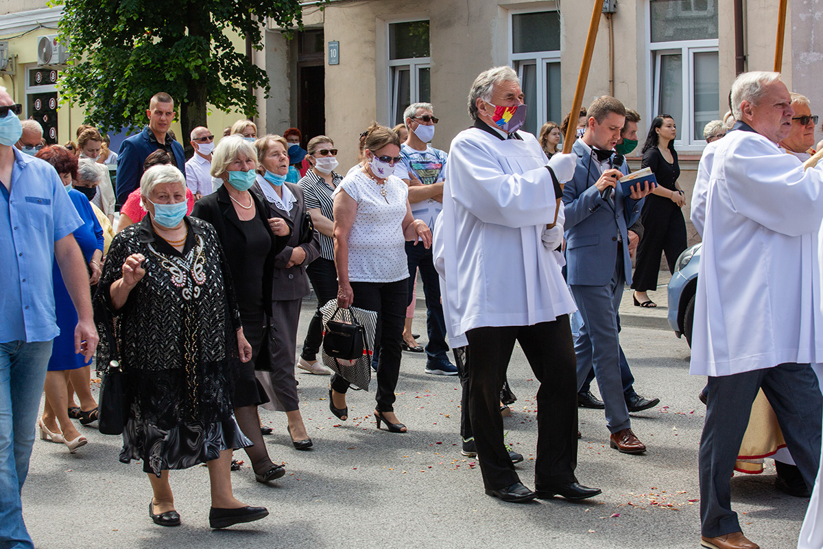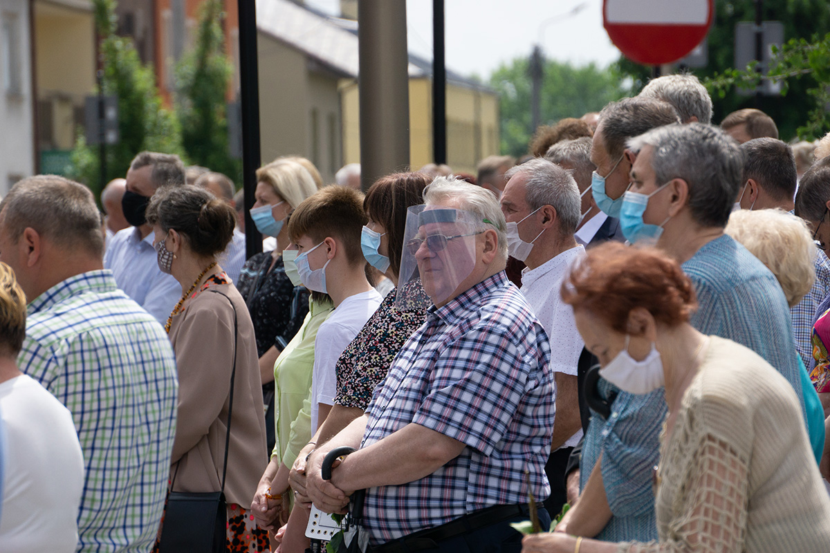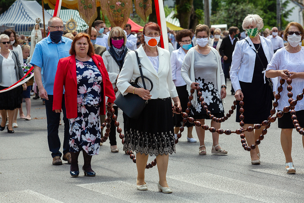 Z powodu pandemii koronawirusa uczestnicy procesji nosili maseczki ochronne. Dzień był ciepły, było to zatem nie lada wyzwanie.