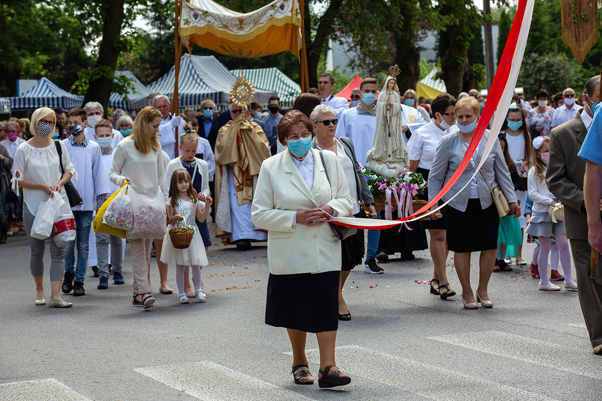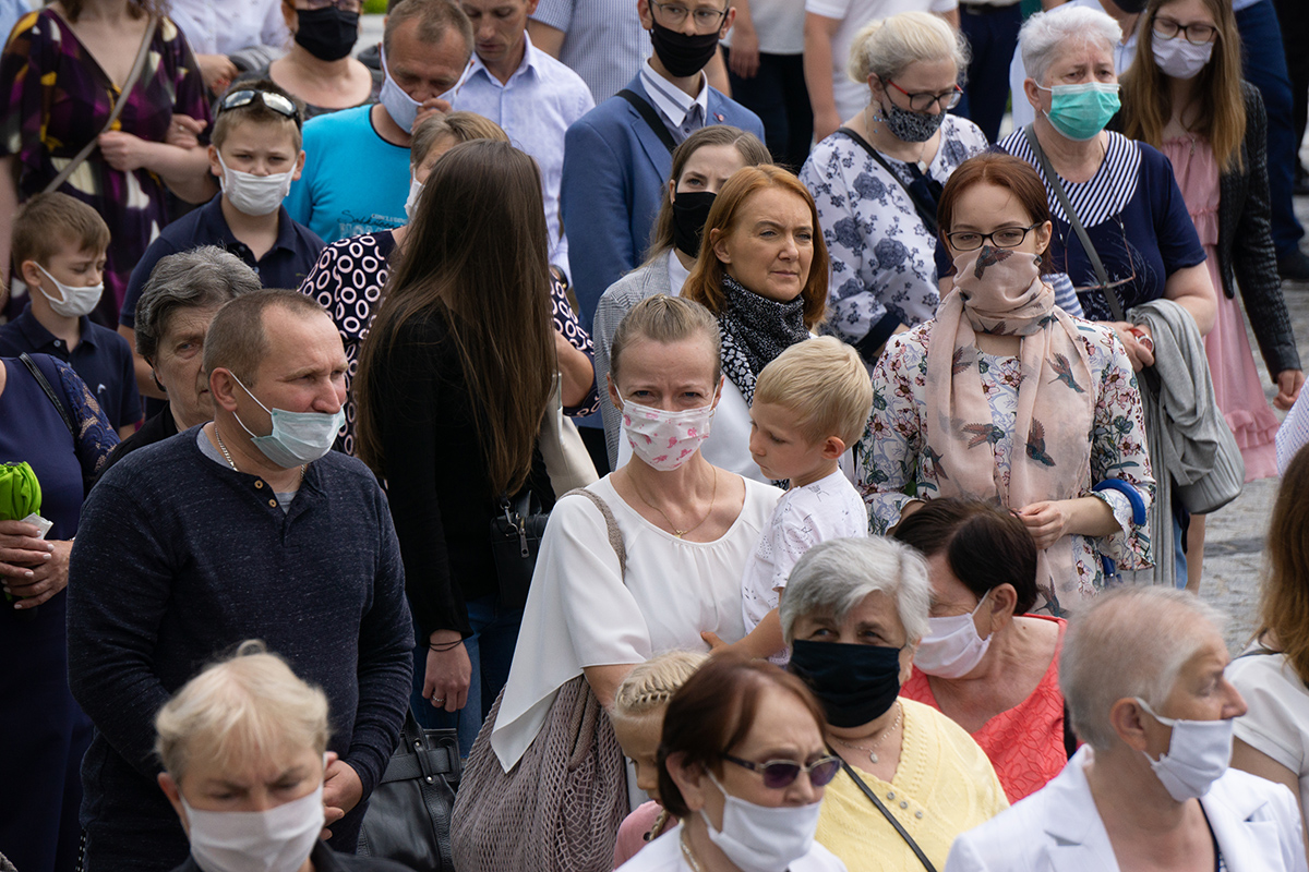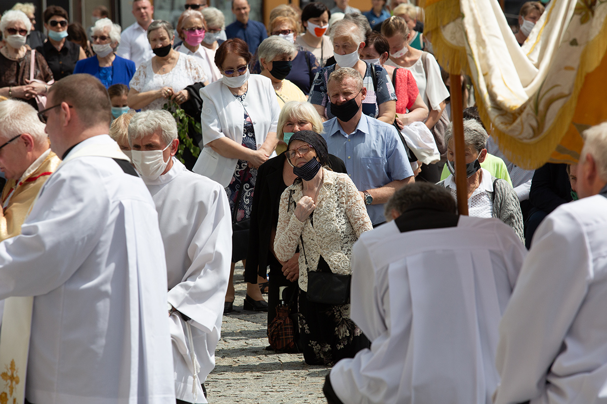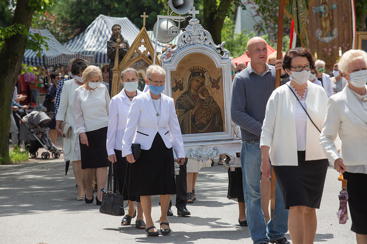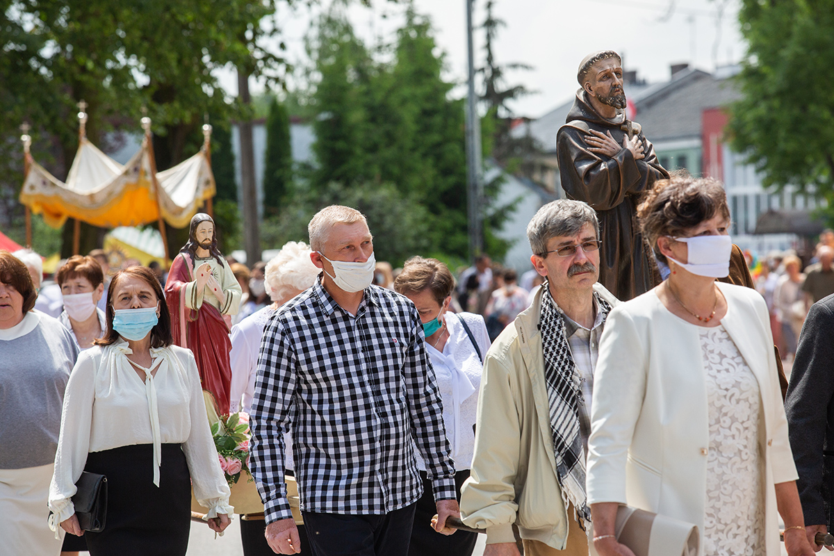 Z powodu pandemii koronawirusa uczestnicy procesji nosili maseczki ochronne. Dzień był ciepły, było to zatem nie lada wyzwanie.