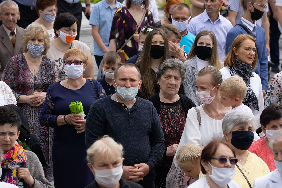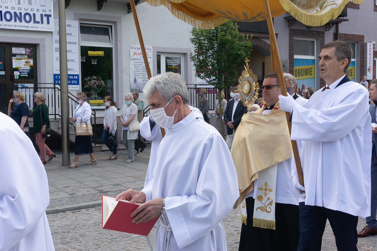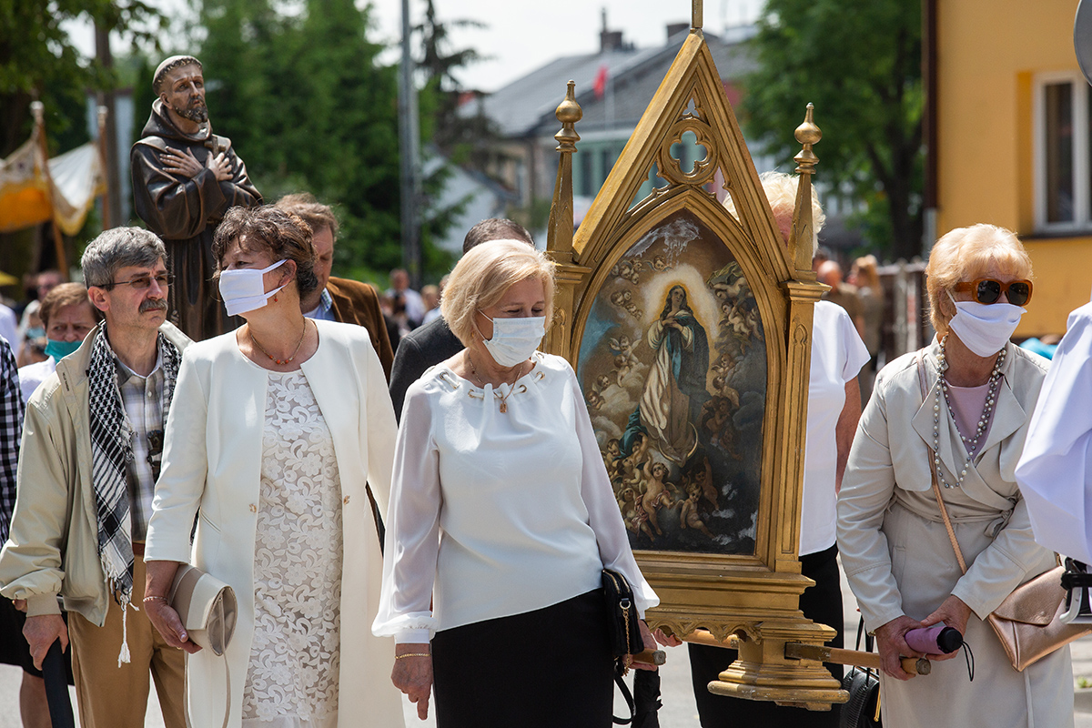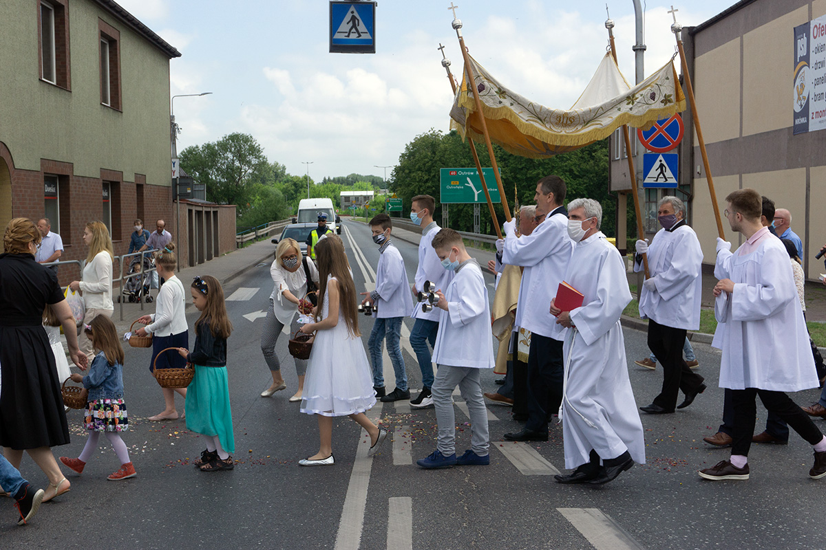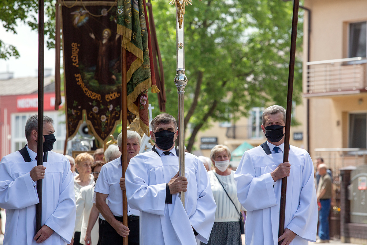 Z powodu pandemii koronawirusa uczestnicy procesji nosili maseczki ochronne. Dzień był ciepły, było to zatem nie lada wyzwanie.