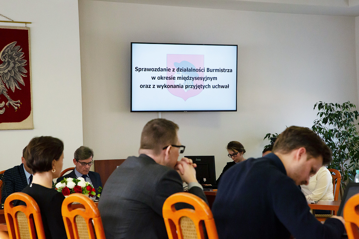 Rada przyjęła sprawozdanie z działalności burmistrza, który przedstawił informację o remoncie ulicy Słoniawskiej oraz budowie kanalizacji deszczowej na ulicy Kolejowej.