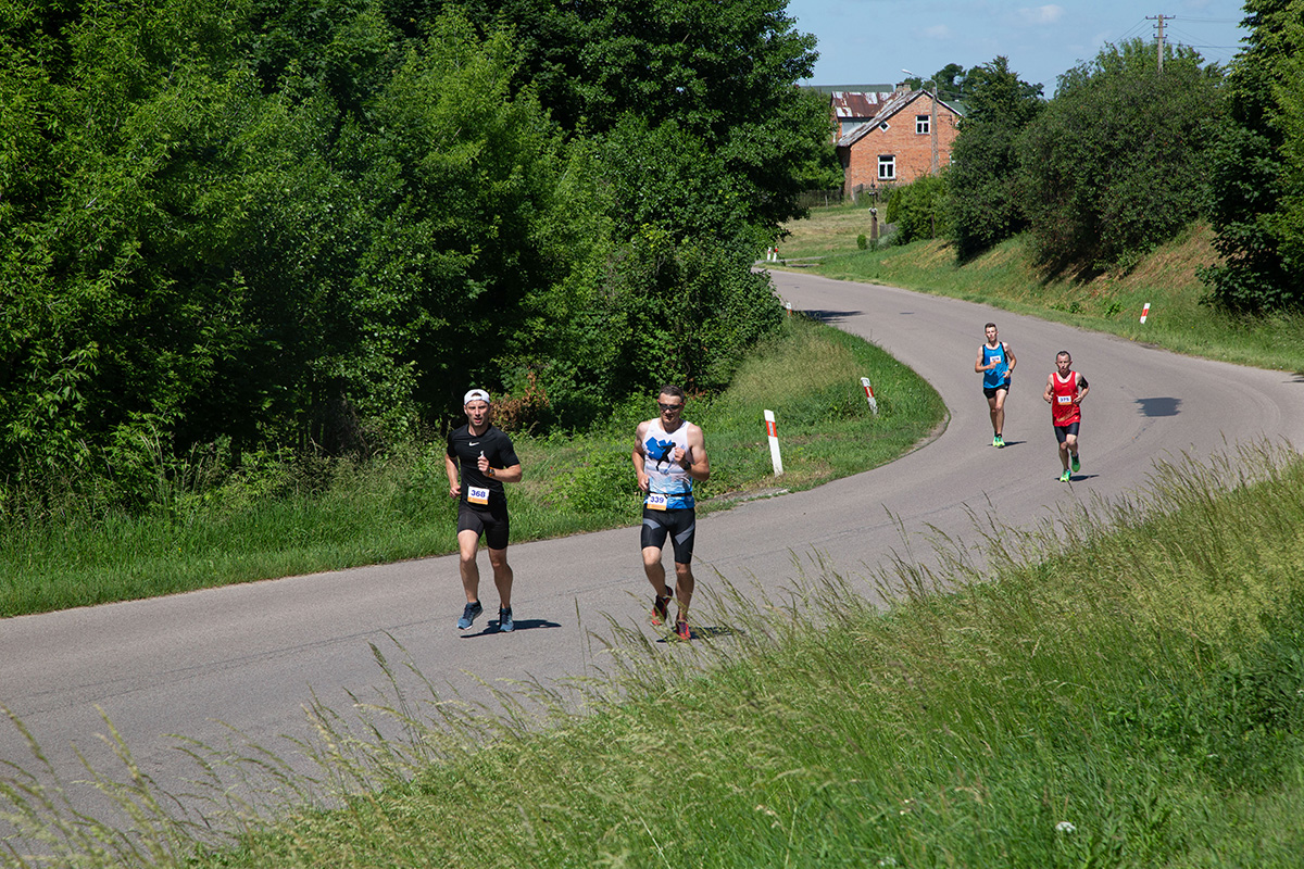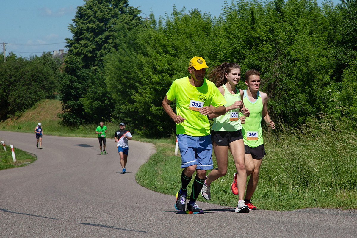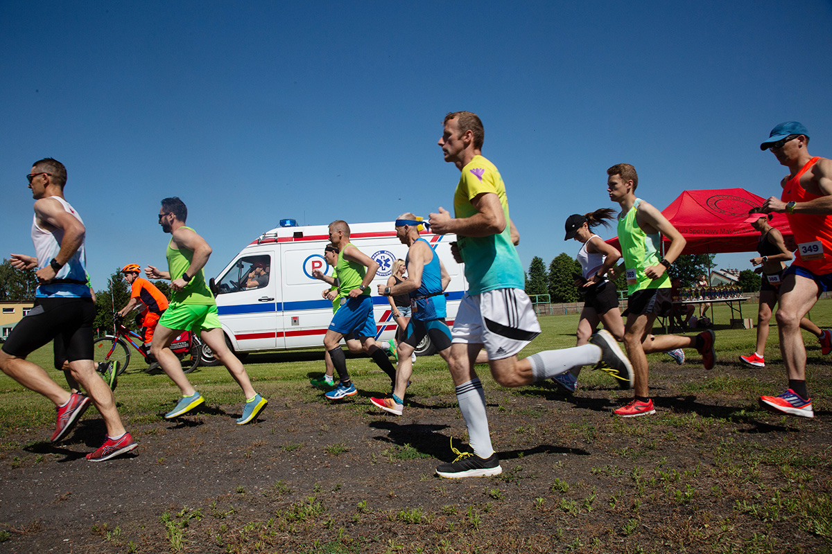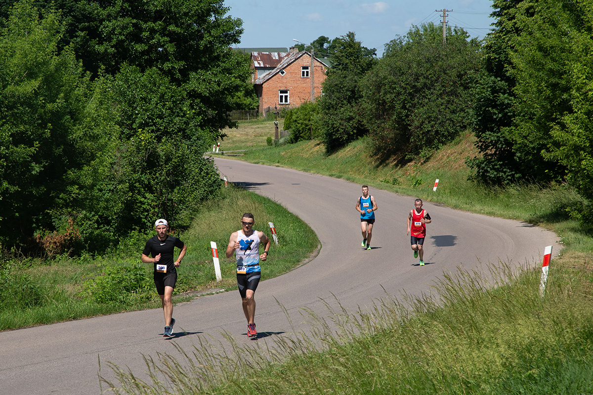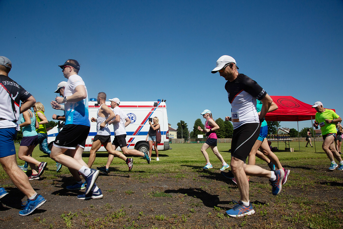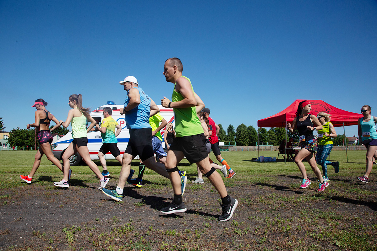 Na zdjęciach: zawodnicy na starcie, trasie i na mecie.