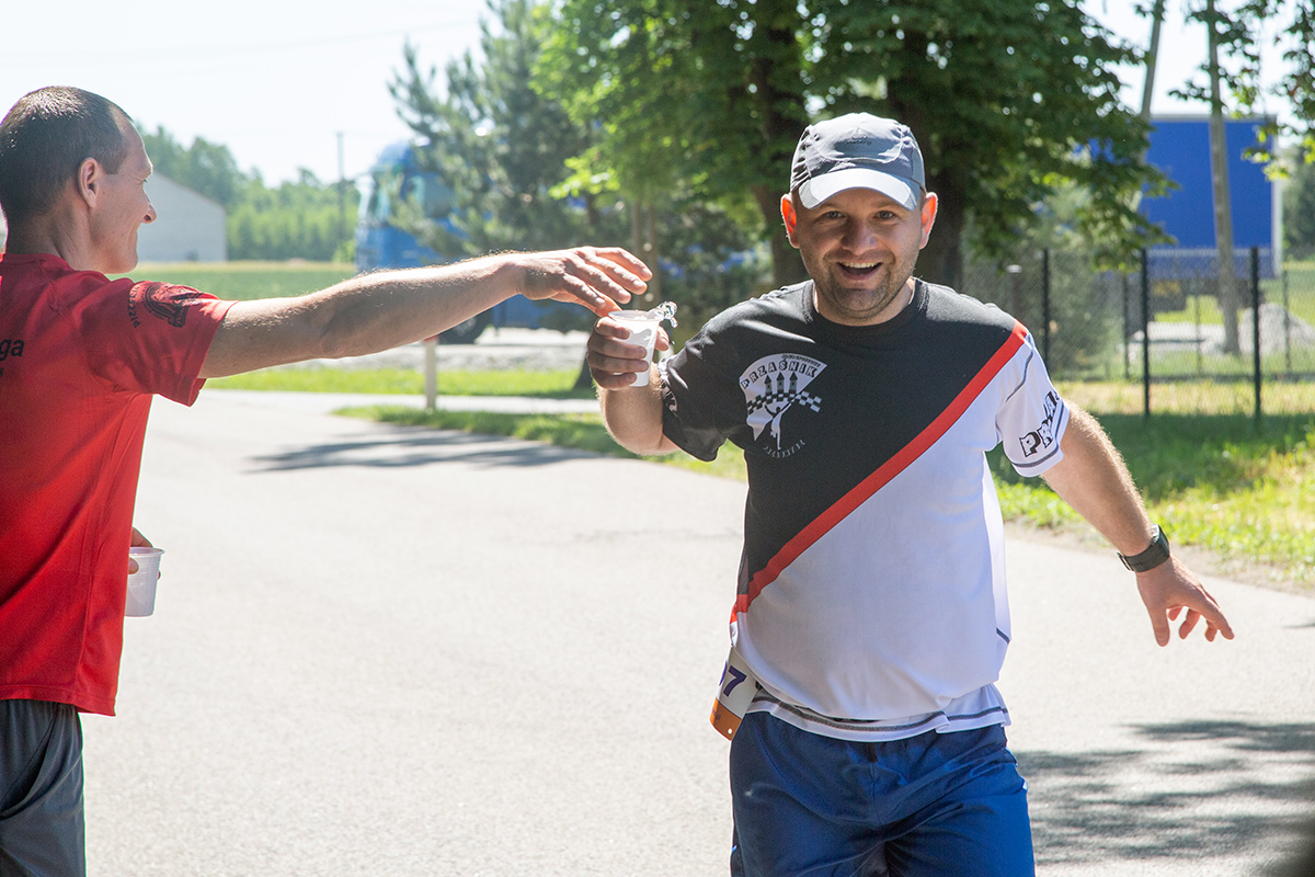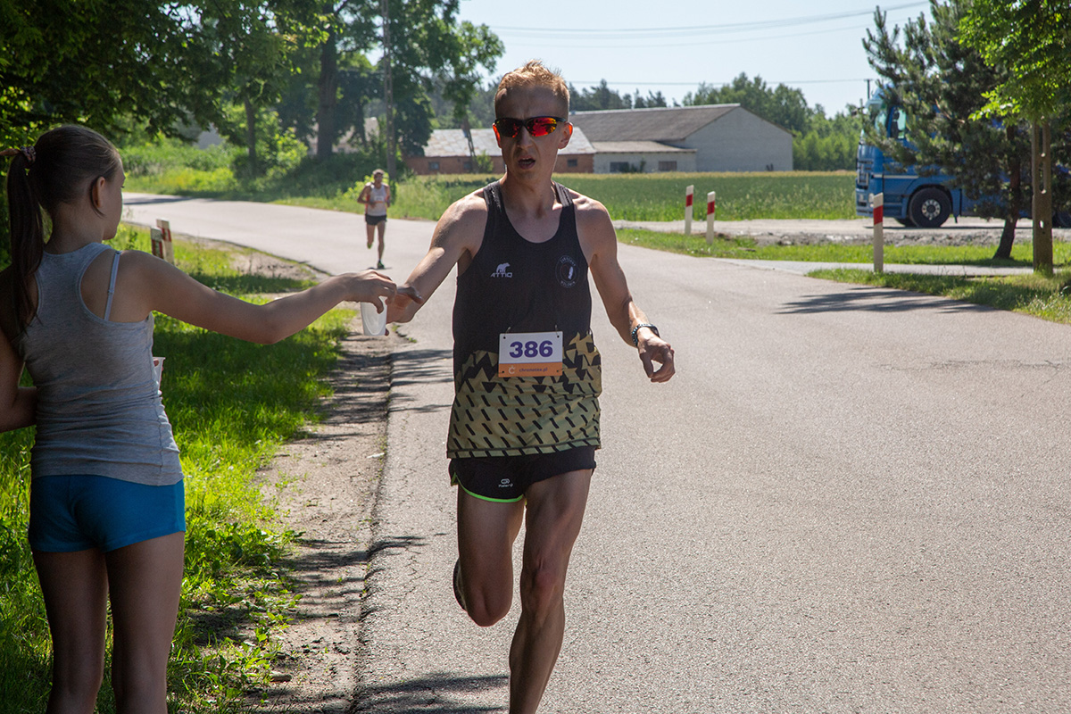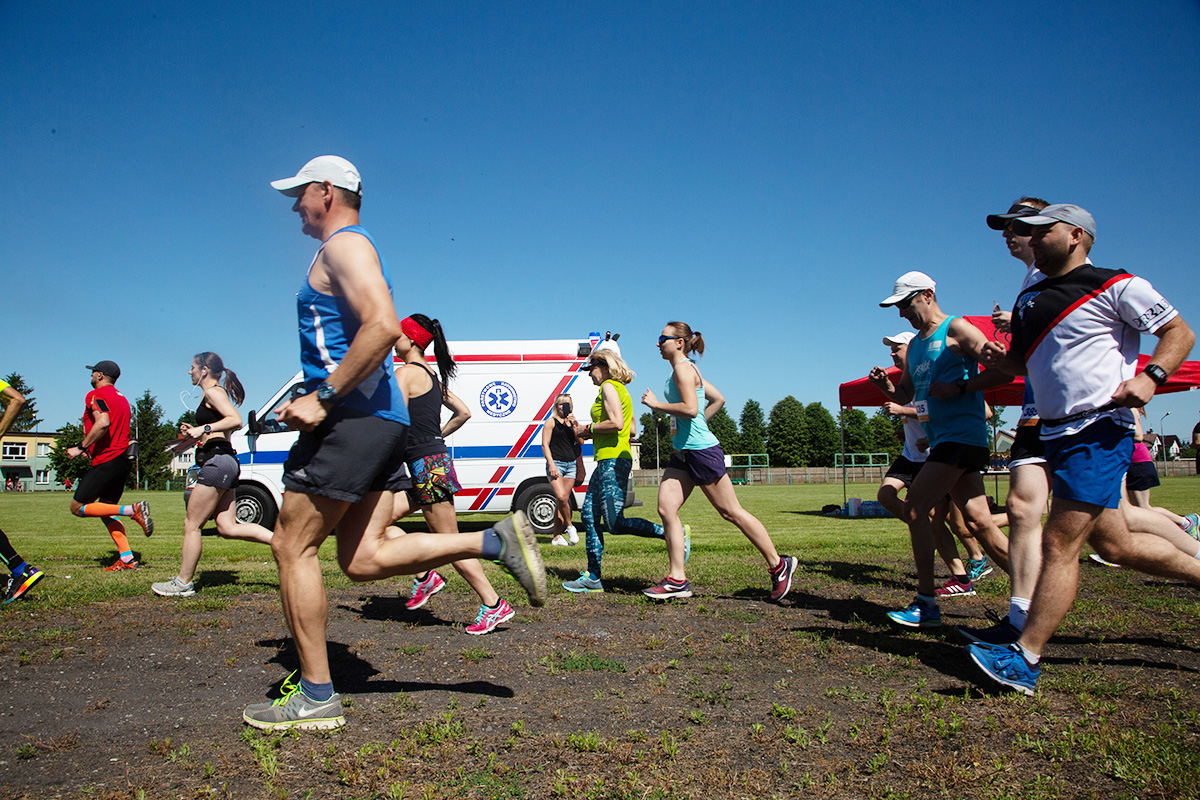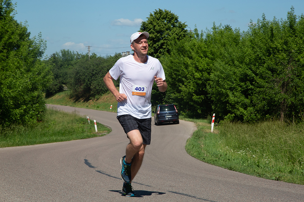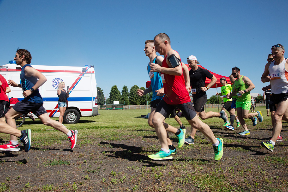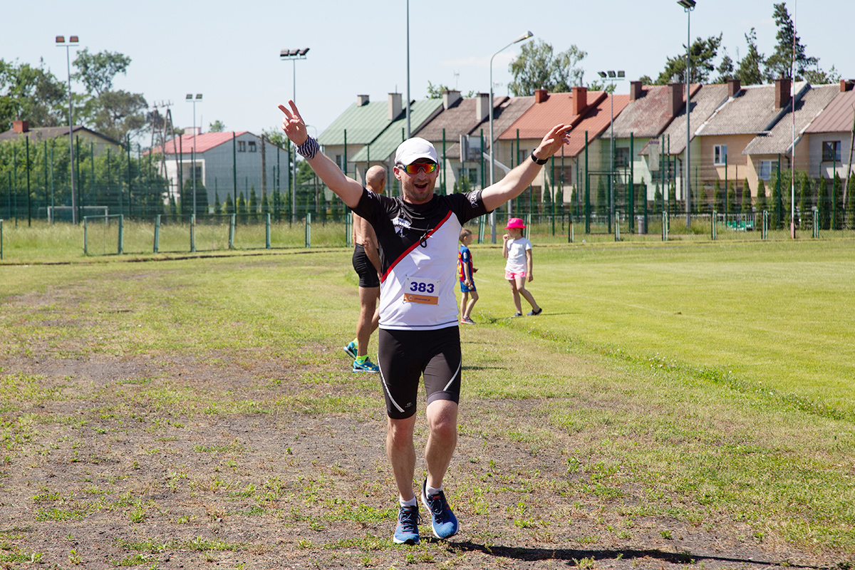 Na zdjęciach: zawodnicy na starcie, trasie i na mecie.