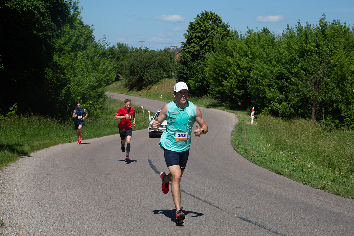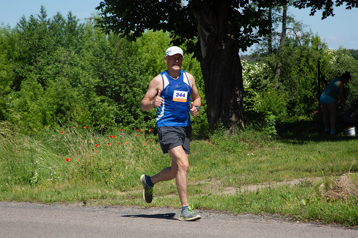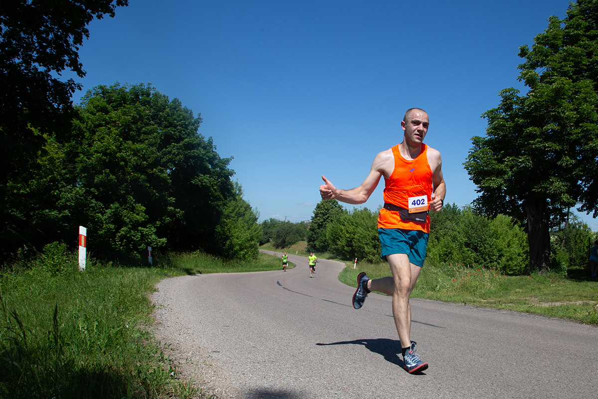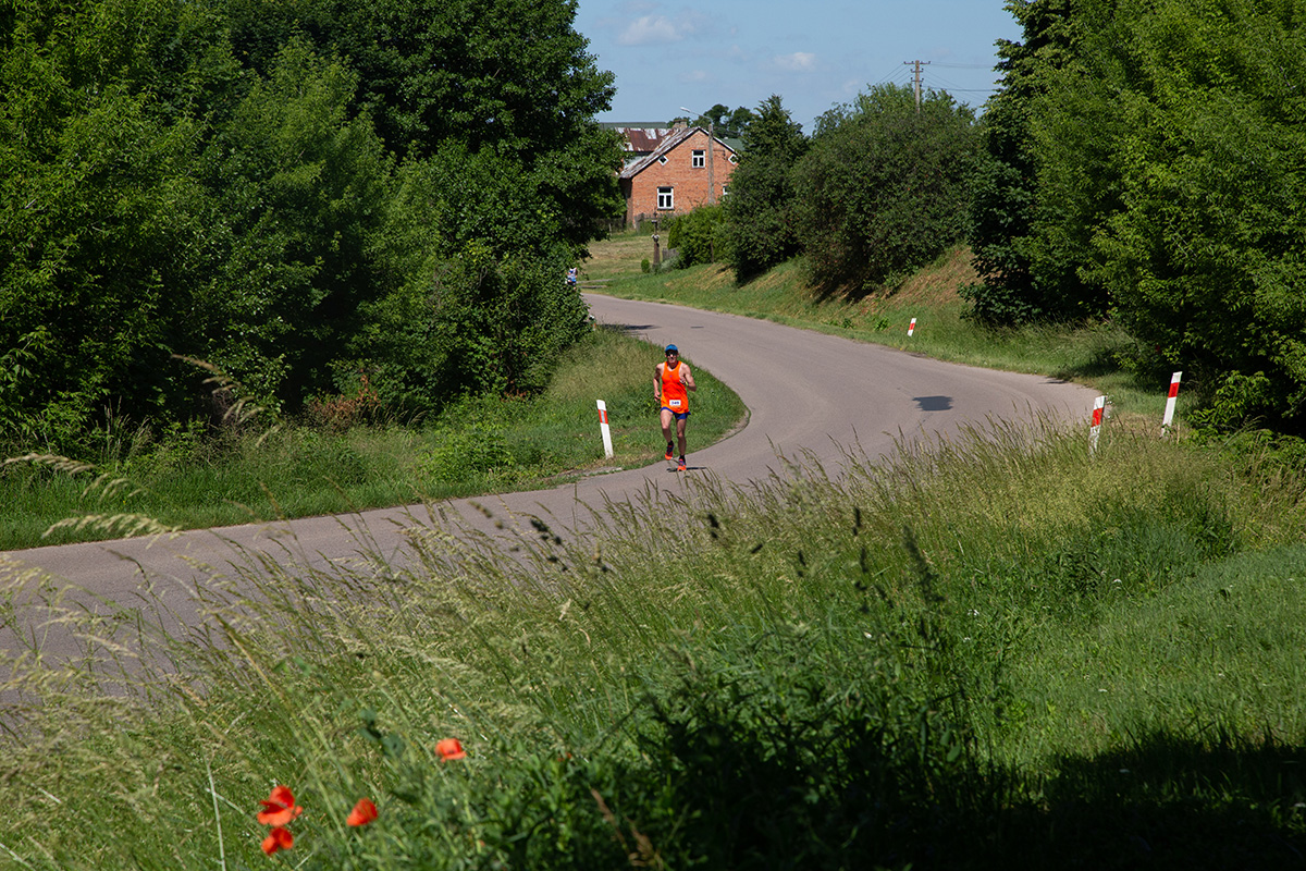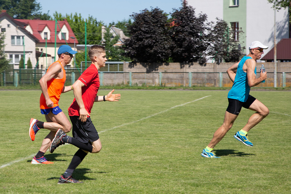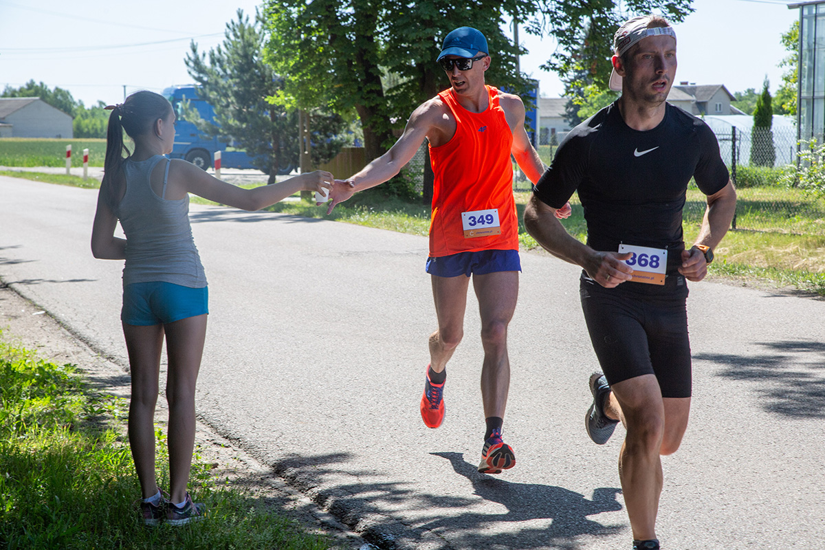 Na zdjęciach: zawodnicy na starcie, trasie i na mecie.