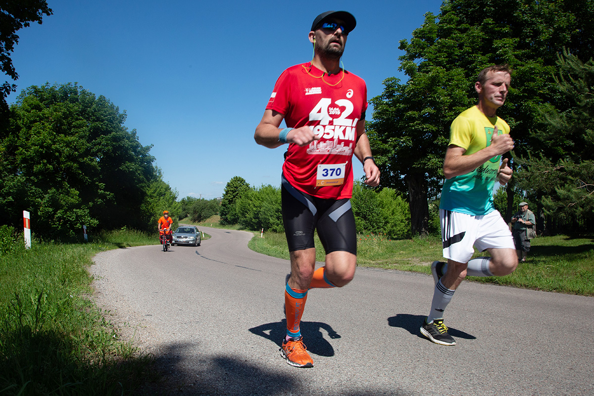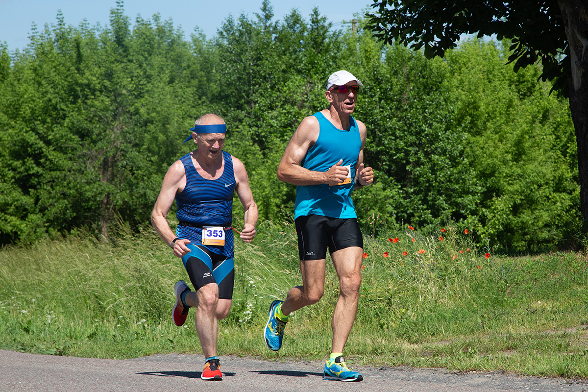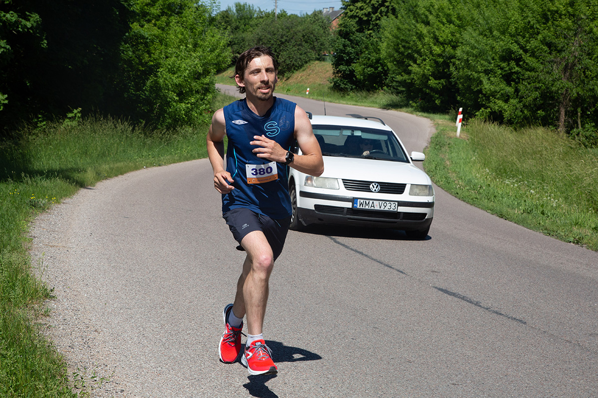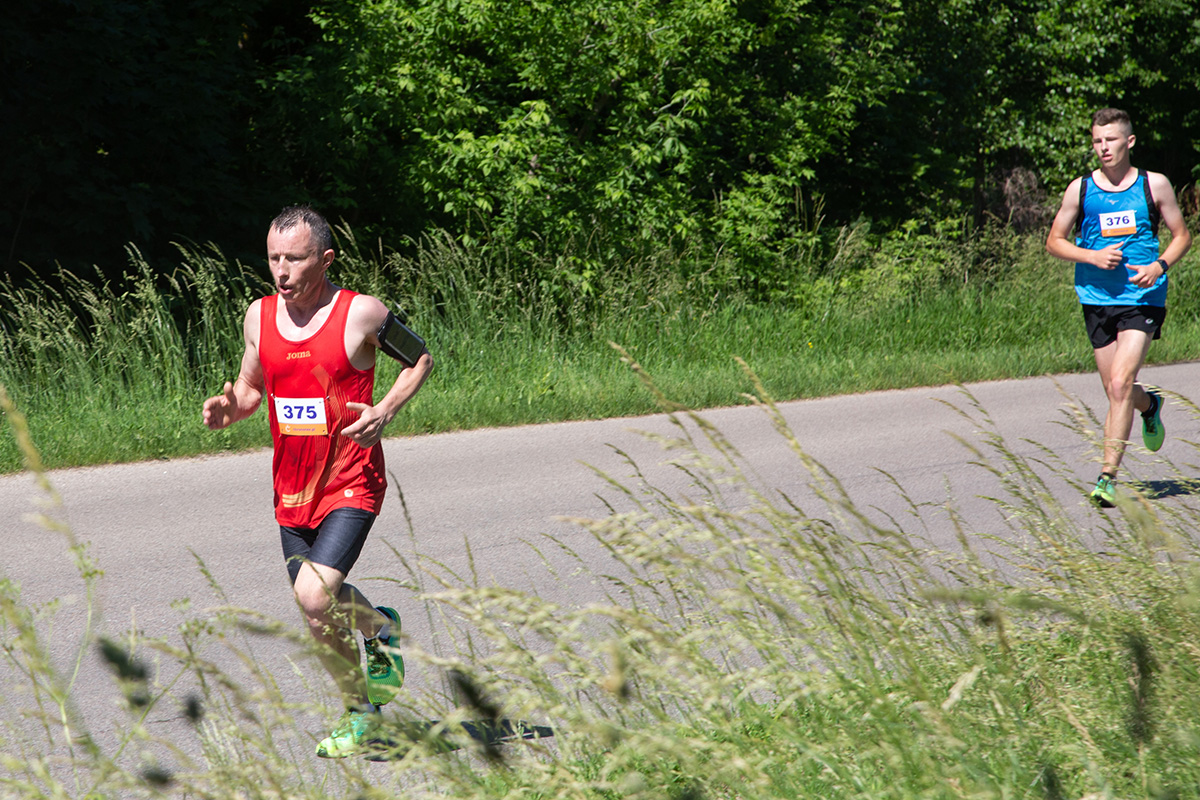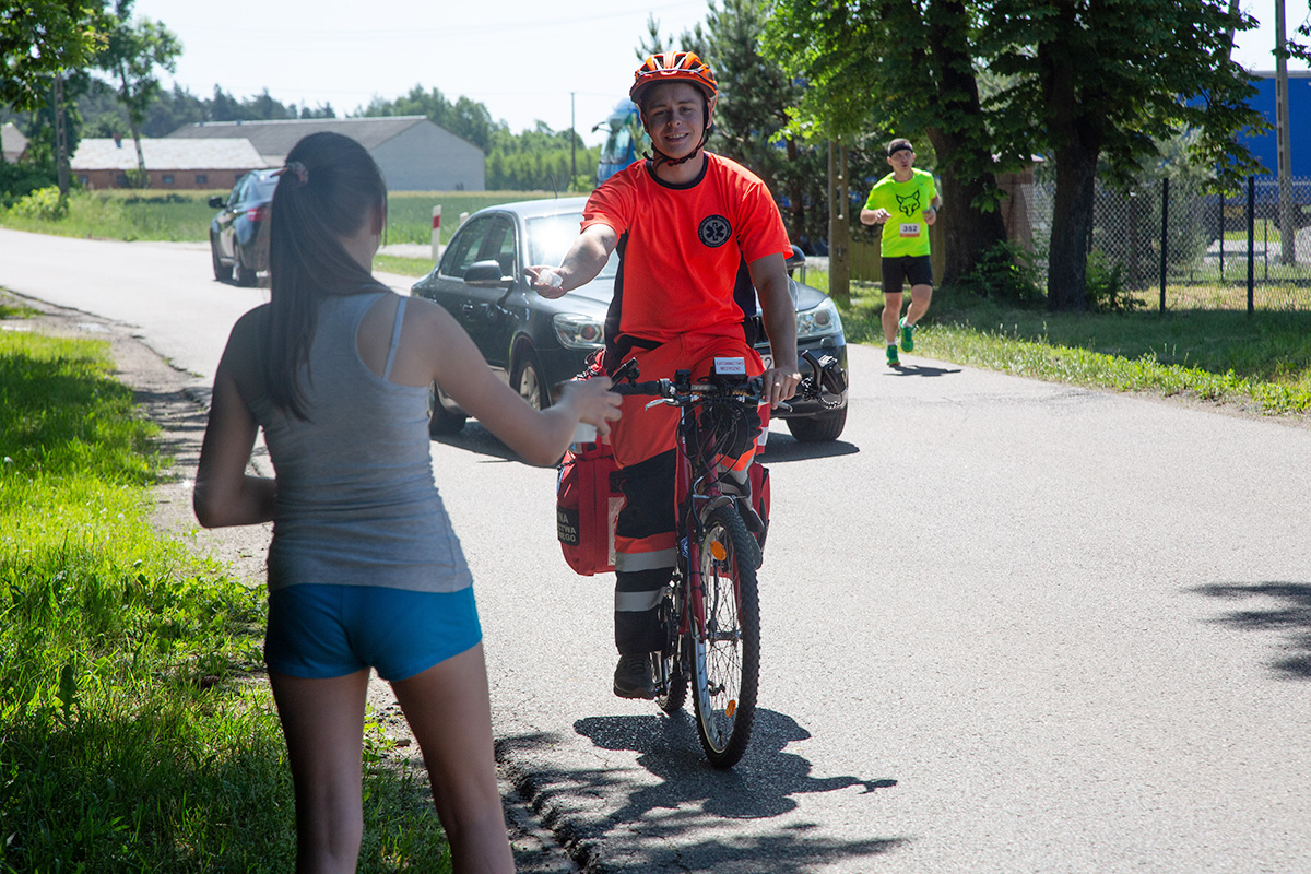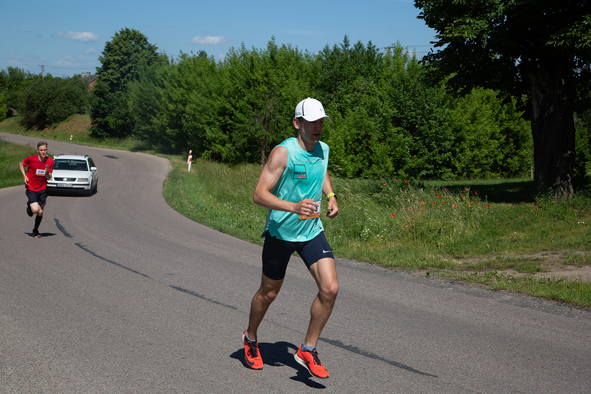 Na zdjęciach: zawodnicy na starcie, trasie i na mecie.