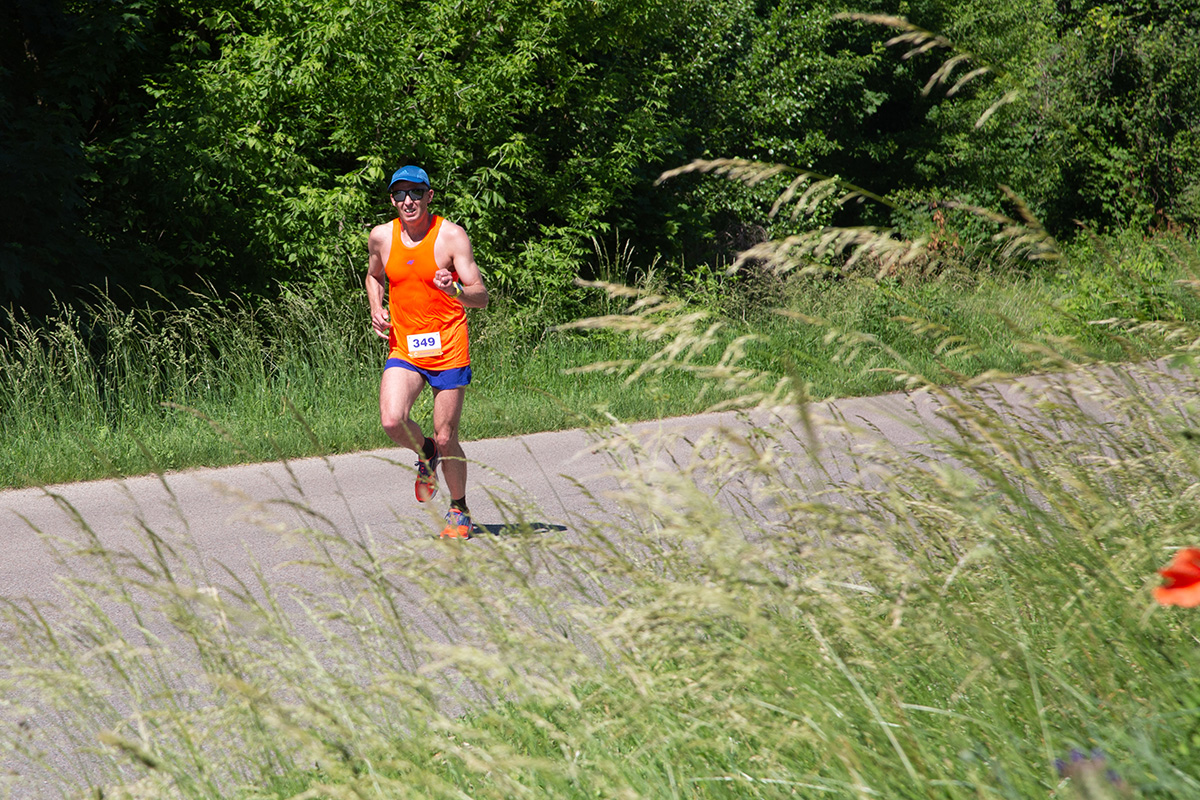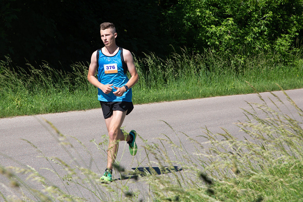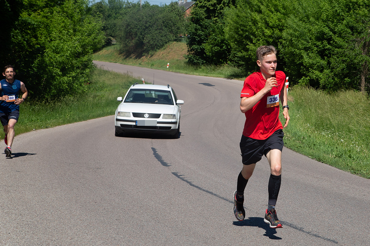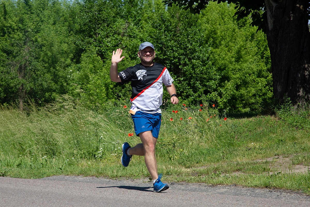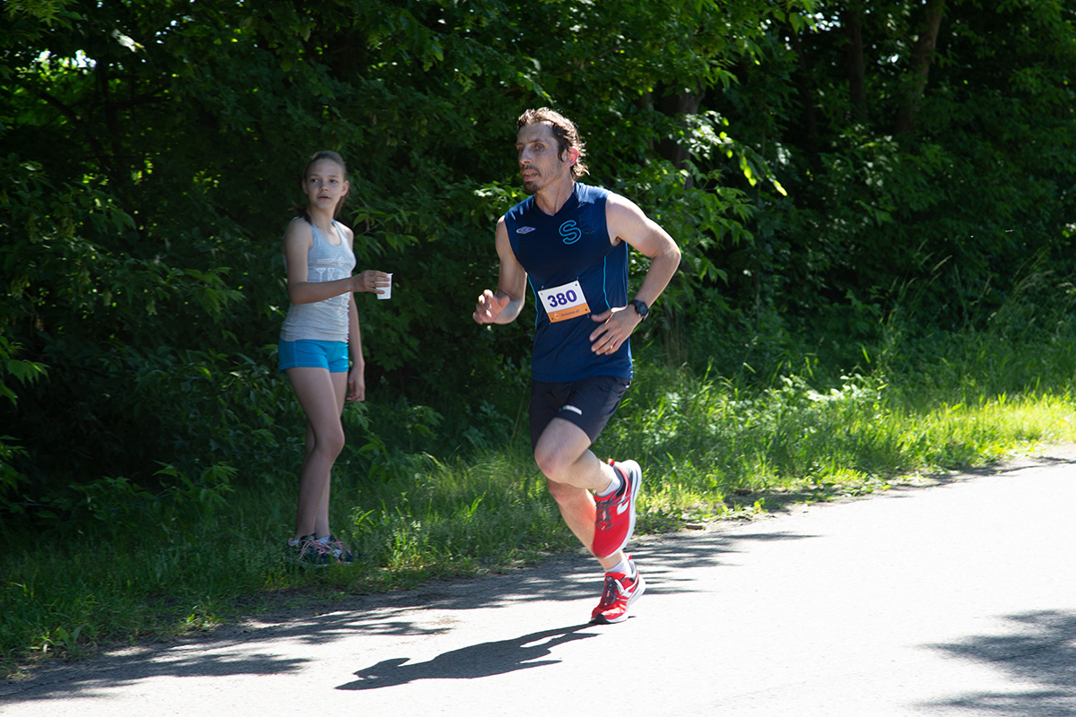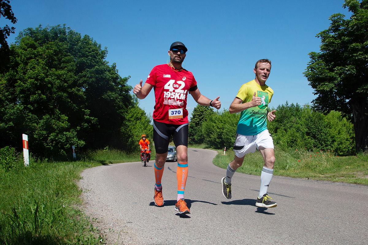 Na zdjęciach: zawodnicy na starcie, trasie i na mecie.