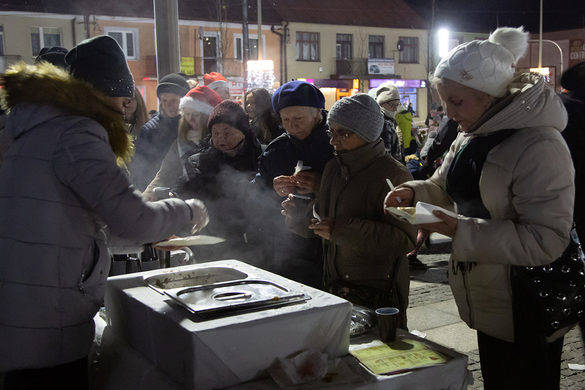 Piękny koncert w wykonaniu uczniów Szkoły Podstawowej nr 2. Było dzielenie się opłatkiem i świąteczne życzenia. Wiele serdeczności i uśmiechów. Był gorący barszcz, pierogi i postna kapusta, przygotowane przez panie z „Pazibrody”.