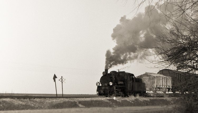 - Do 1983 składy ciągnął parowóz Px 48 – najpopularniejszy polski parowóz wąskotorowy. Widoczne za nim wagony normalnotorowe nie jadą bezpośrednio na szynach a na specjalnych platformach. Zdjęcie wykonane w kwietniu 1980 roku pod Makowem.