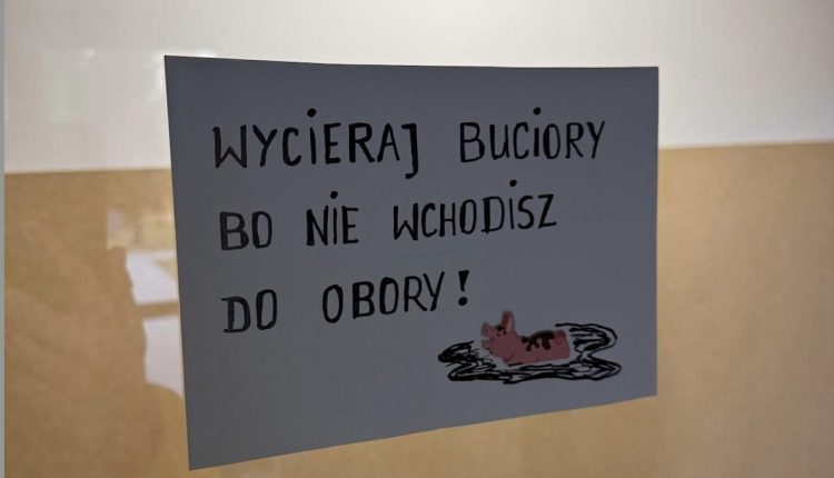 „Wycieraj buciory, bo nie wchodzisz do obory” – świąteczny humor na klatce schodowej