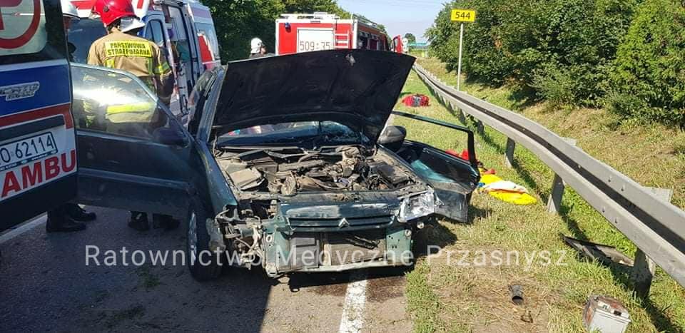 Ratownicy medyczni z Przasnysza poinformowali, że dzisiaj, 25 lipca, w Chodkowie Kuchnach (gm. Płoniawy Bramura) doszło do zderzenia dwóch pojazdów. Dwie osoby zostały przewiezione do szpitala w Przasnyszu.