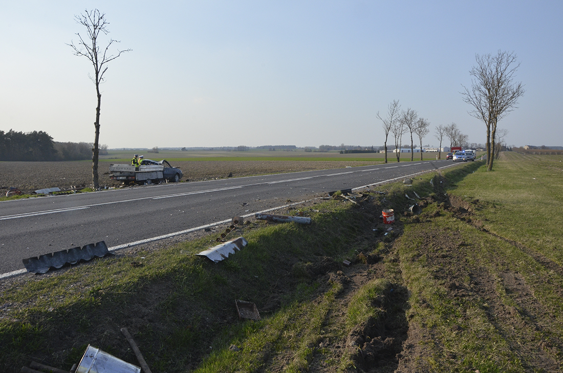 Wczoraj (8.04.2019) około godz. 15:10 doszło do groźnego wypadku w miejscowości Dzierżanowo na drodze krajowej nr 57. Auto ciężarowe najechało na tył poloneza. Jedna osoba trafiła do szpitala.