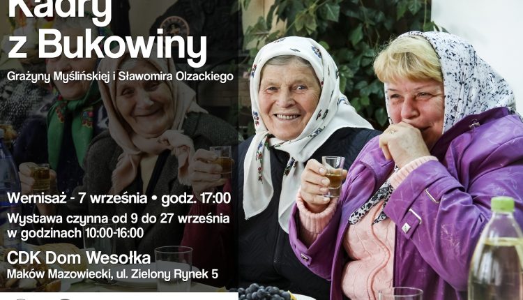 Wystawa „Kadry z Bukowiny” to niezwykła podróż w czasie i przestrzeni. Grażyna Myślińska i Sławomir Olzacki – autorzy fotografii – przedstawią nam historię oraz kulturę Polaków mieszkających na Bukowinie.